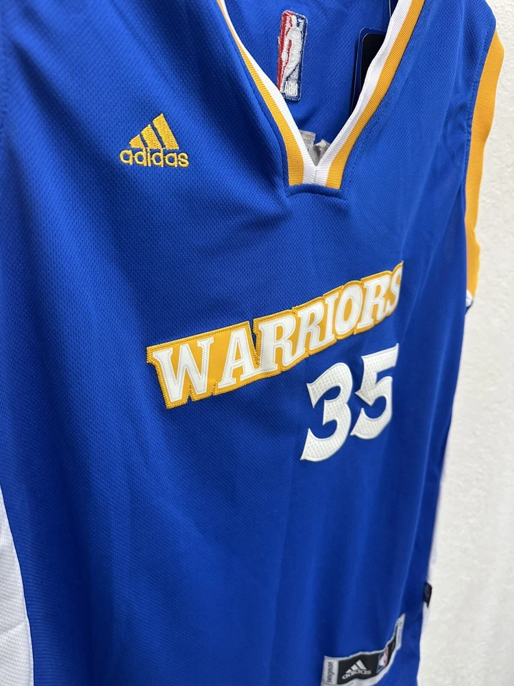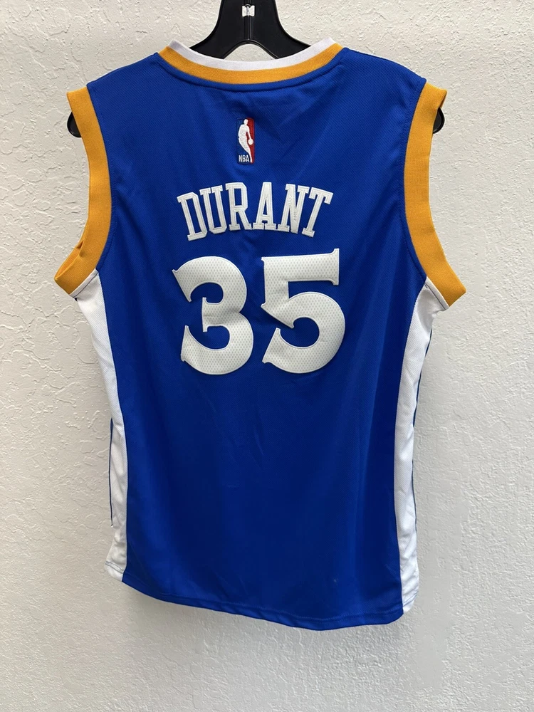 Adorn yourself in the vibrant blue of the Golden State Warriors with this Kevin Durant jersey by Adidas. Designed for fans who want to show their support during the regular season and beyond, this jersey is a staple for any basketball enthusiast. The size XL ensures a comfortable fit for a range of body types, while the high-quality materials and construction reflect your team's impeccable style on and off the court. Officially licensed by the NBA, this jersey is perfect for those who appreciate the legacy of basketball and the prowess of Kevin Durant. Whether you're at the game or just out and about, this Adidas jersey is a versatile piece of fan apparel that lets you carry the spirit of the Warriors wherever you go.