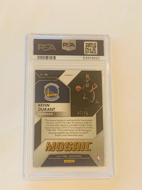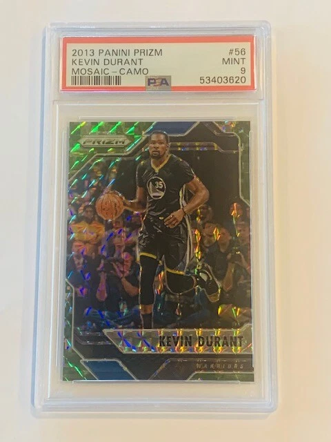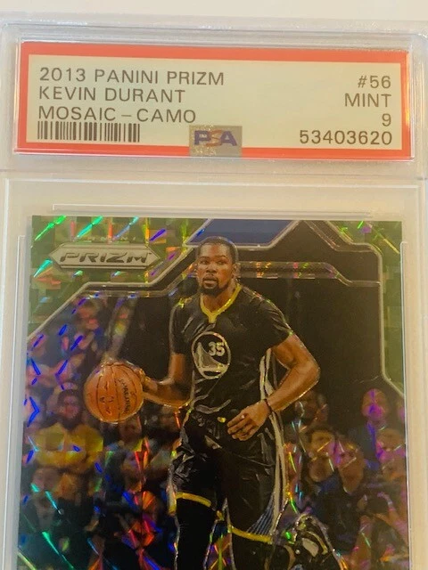 Absolutely awesome and highly collectible RARE 2013 Mosaic Kevin Durant Camo Prizm sp insert serial numbered 2/25 and only 2 graded in the world a PSA 9 and none graded higher. See all pictures for amazing condition, size, and detail. There are absolutely no returns on sports cards as the market for sports cards changes literally on a daily basis. Check out my store for some of the rarest vintage collectibles online from all eras. Thanks for looking and have a great day! :)