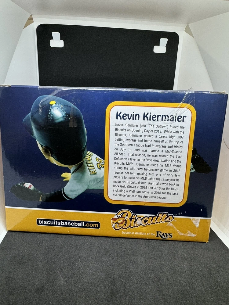This Kevin Kiermaier Dodgers Player 2017 Montgomery Biscuits Bobblehead SGA is a must-have for any baseball fan. It features the official Montgomery Biscuits brand and is officially licensed by Major League Baseball. This bobblehead is a great addition to any collection and is perfect for displaying in your home or office. The multi-color design and one-size-fits-all size make it a versatile piece of fan apparel and souvenir. This product is a stadium giveaway and is perfect for fans of the Los Angeles Dodgers and Kevin Kiermaier. Add this unique and collectible bobblehead to your collection today!