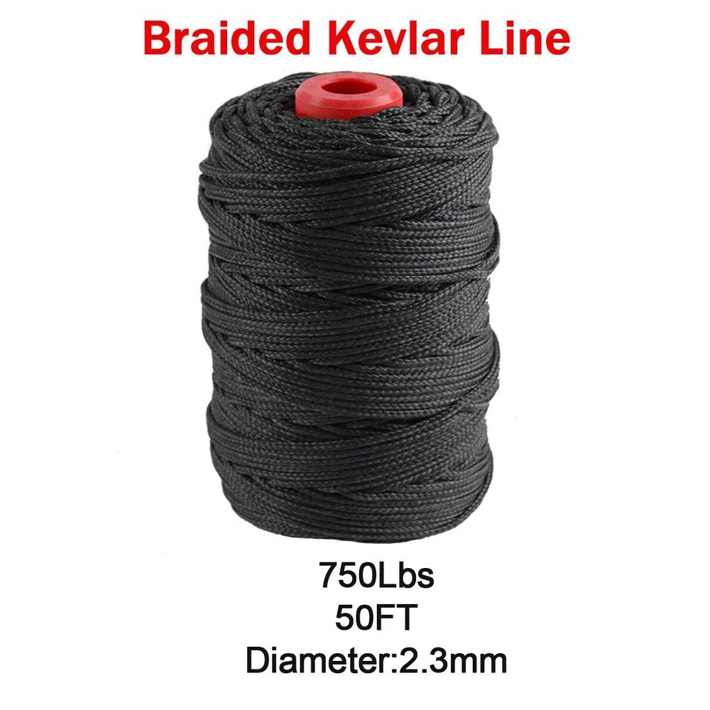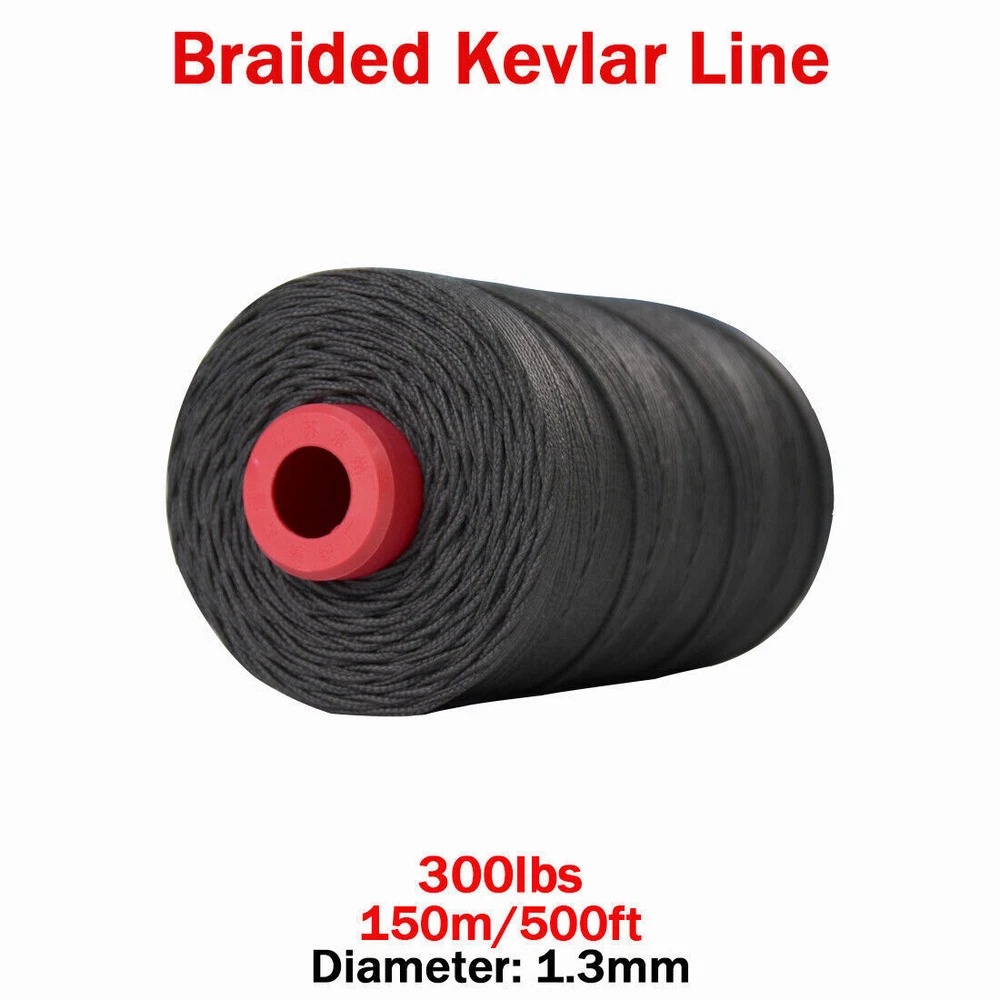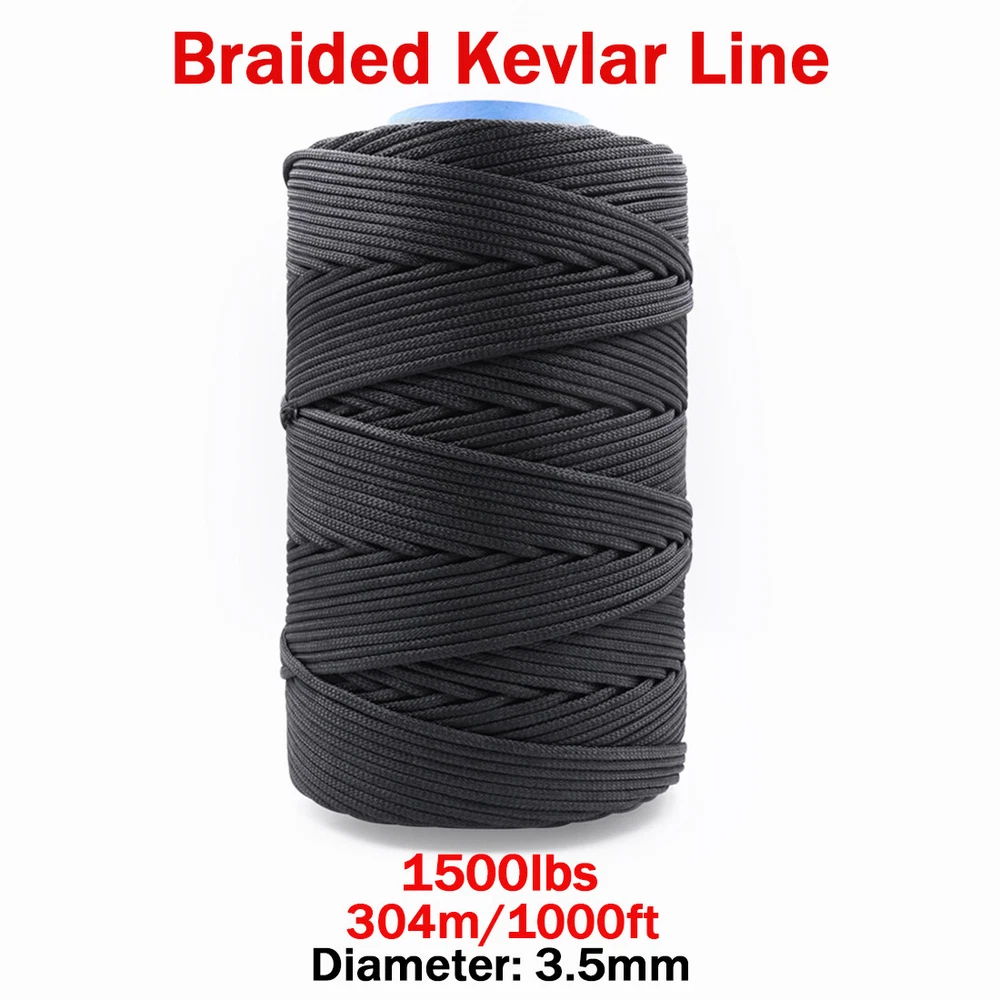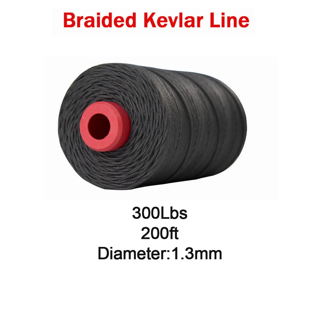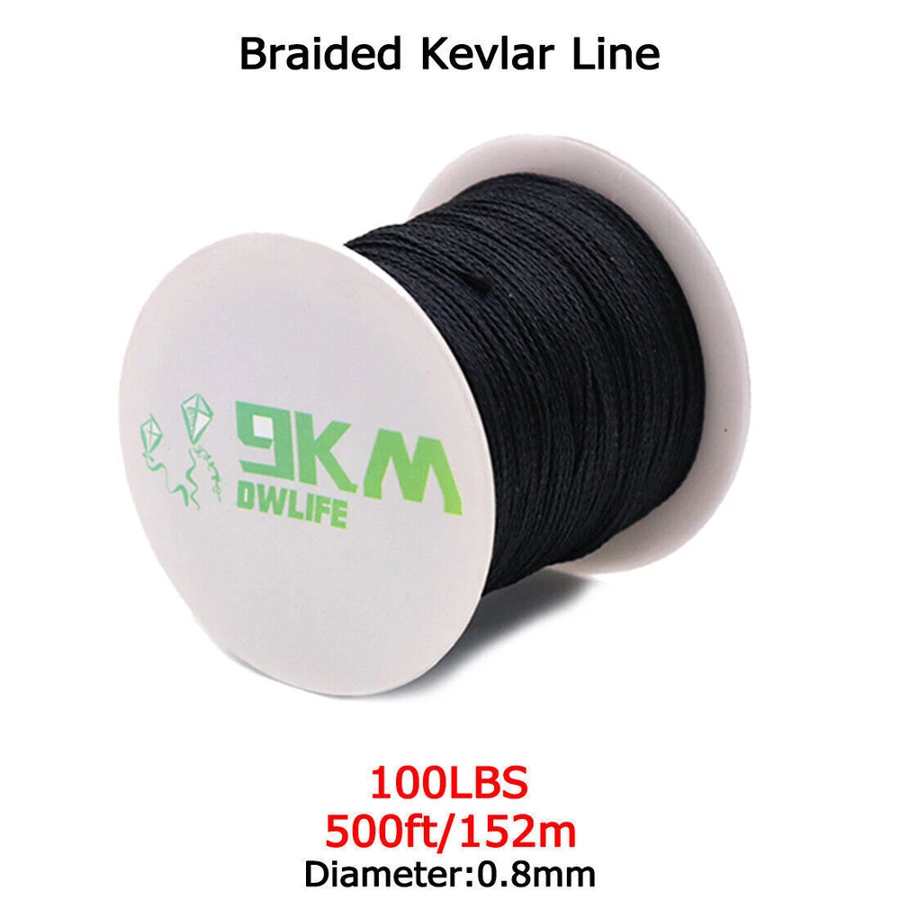 50lb-1500lb BRAIDED KEVLAR LINE Kevlar Fiber: The braided kevlar string is made of 100% kelvar fiber which is of high strength, high harness, high toughness and high abrasion resistance. Construction of Braid: Multi-strands interweaving process makes the string / cord much more durable, and it won't unravel like twisted line. Tough String: Every kevlar fiber is of high tensile strength. It exerts much higher strength in the same diameter. Cut-Resistance: One of the best advantages of Kevlar string. It helps avoid many unexpected string snaps which happen a lot in binding and fastening objects with sharp edges. Application: We provide strings from 100lb to 1500lb to meet different requirements, like, fishing, camping / hiking equipment fastening, usual outdoor line, plant support, gardening work, decoration hanging, creative projects, etc. Strength - Diameter - Weight per Meter: Approximately ±2~3% deviation exists in measurement. AMAZING Black COLOR! Great for outdoors Light weight, high tensile strength and small diameter make Kevlar cordage a great choice for below activities: Kites Flying String / Fishing Assist Line Large Model Rocket Cord / Speargun Shooting Line Camping Tarp Ridge Lines / Ultralight Backpacking Climbing / Rigging Sling / Survival Gear / Emergency Repair Cord Hiking Equipment Fastening / Tent Guy Lines Plant support / Arborist accessories Gardening Work / Decoration Hanging / Mason's line / Creative projects, etc. Notice:Around 90% of original strength is the safety working load. It‘s testing result from line factory.