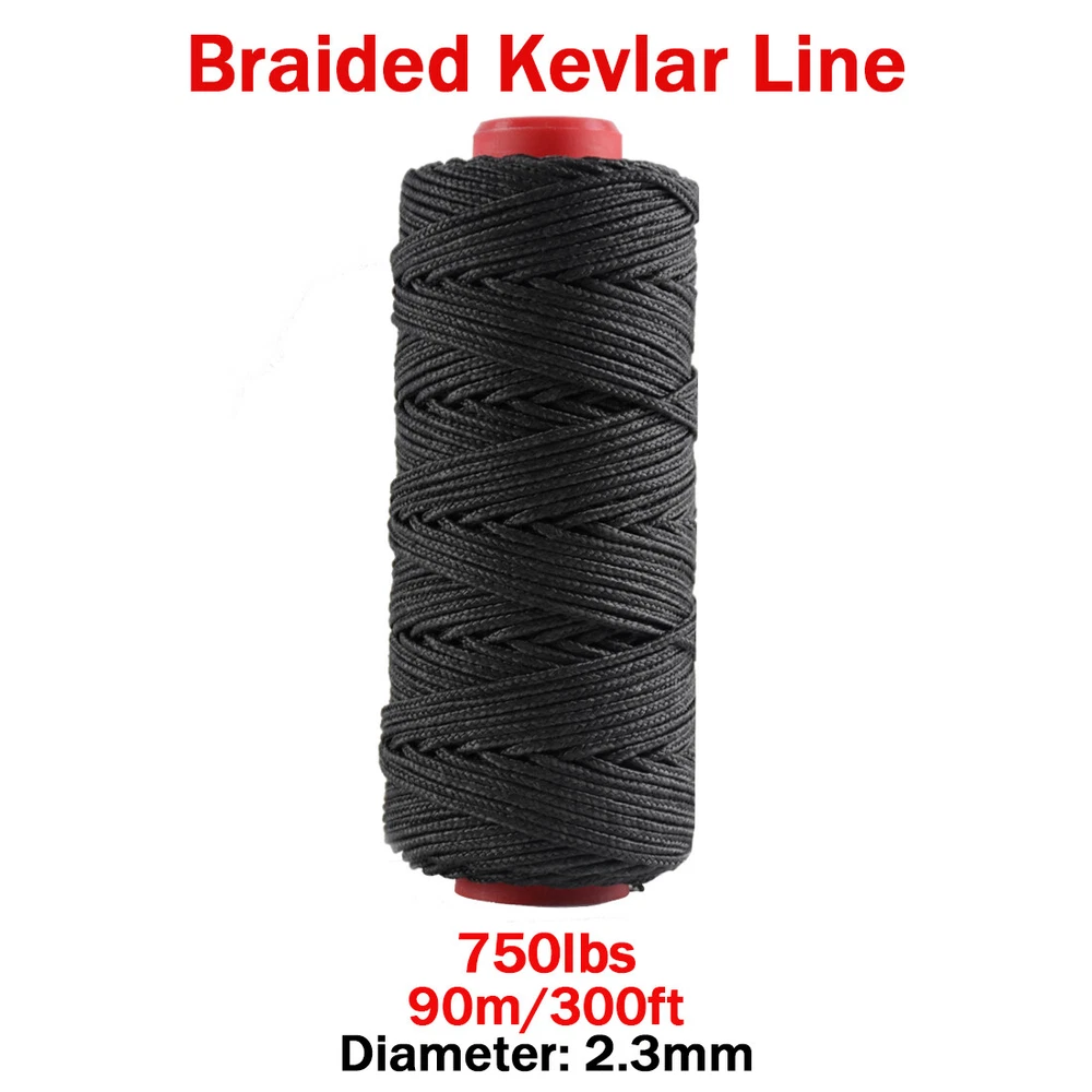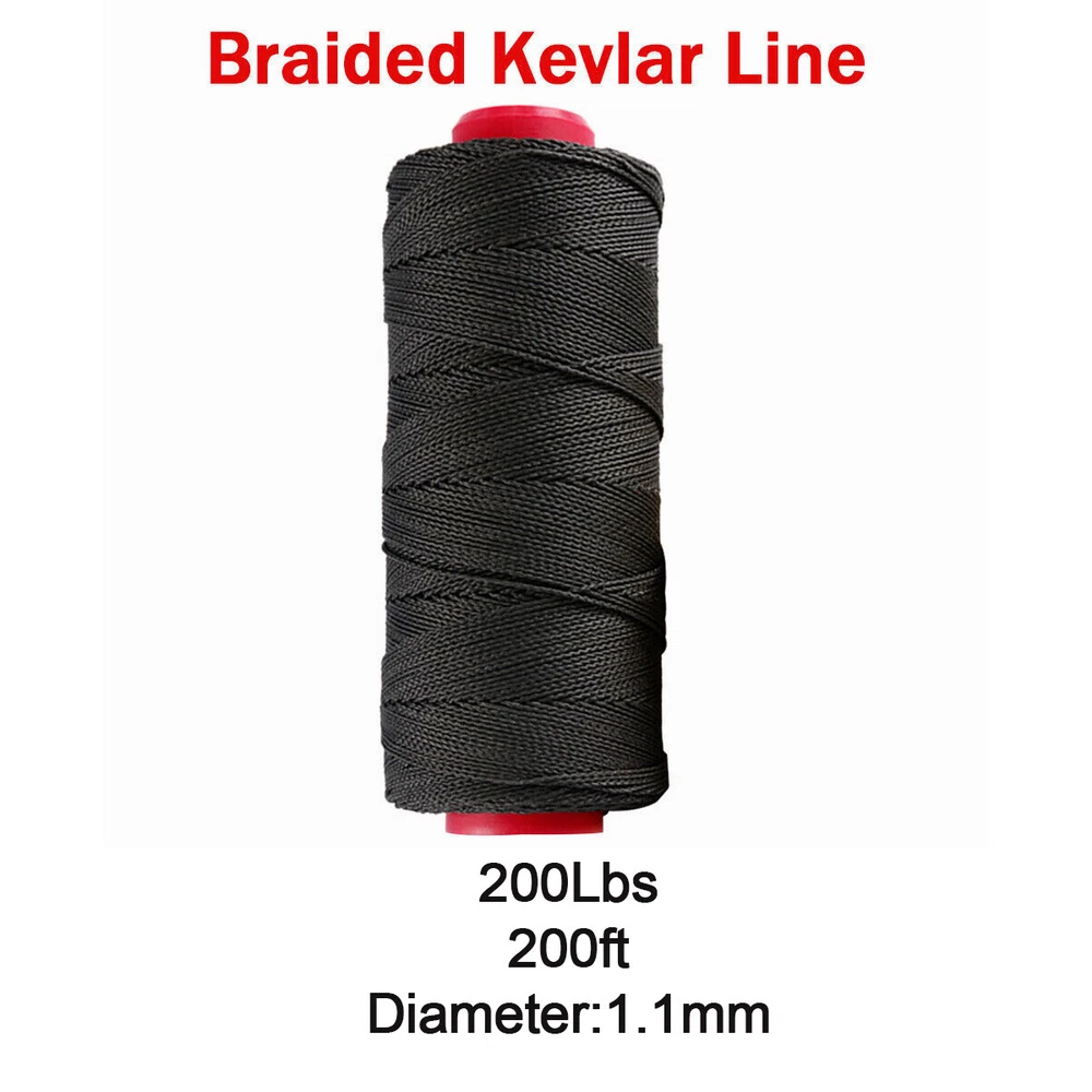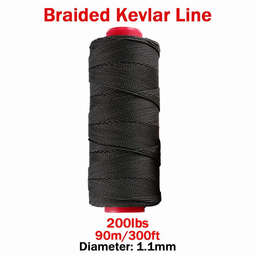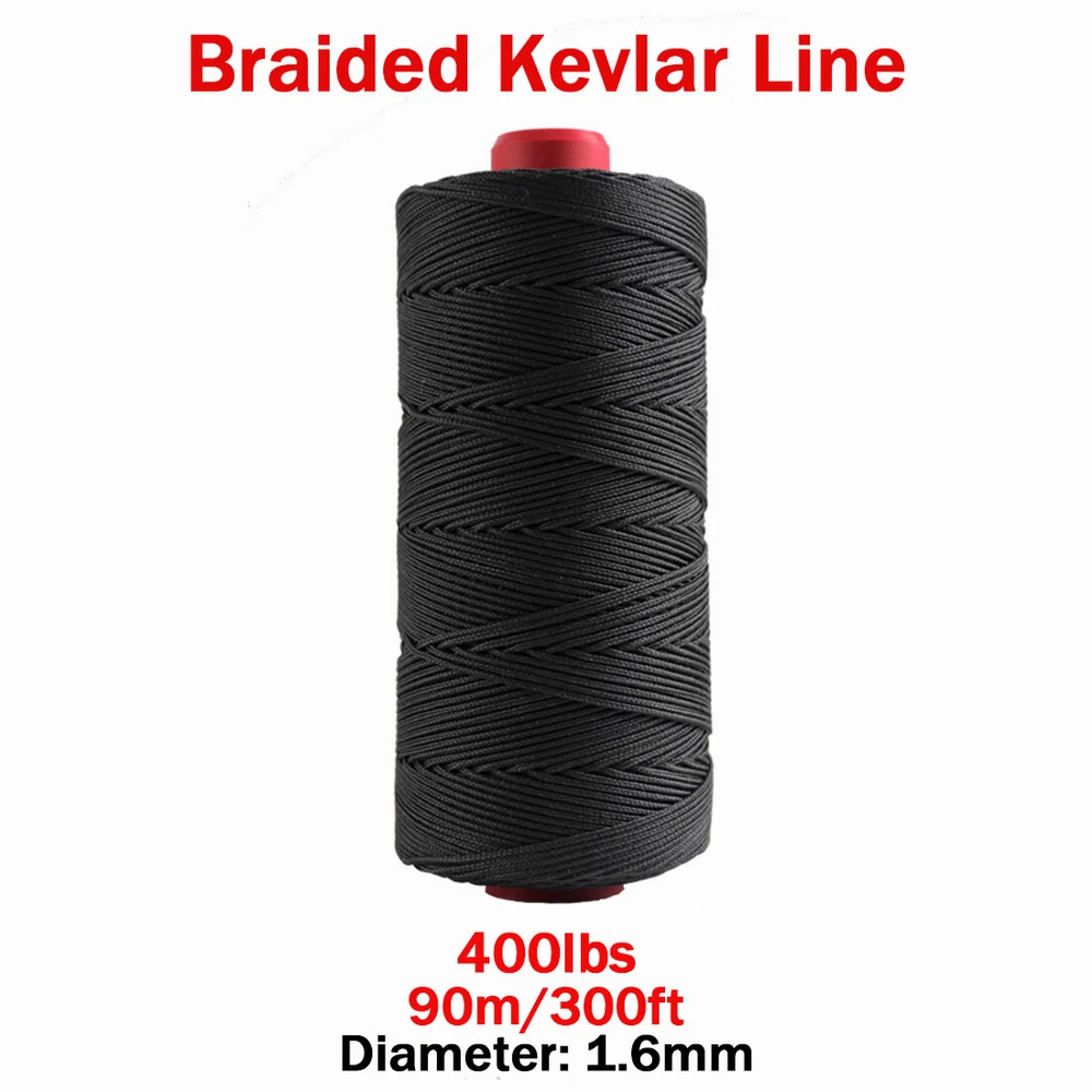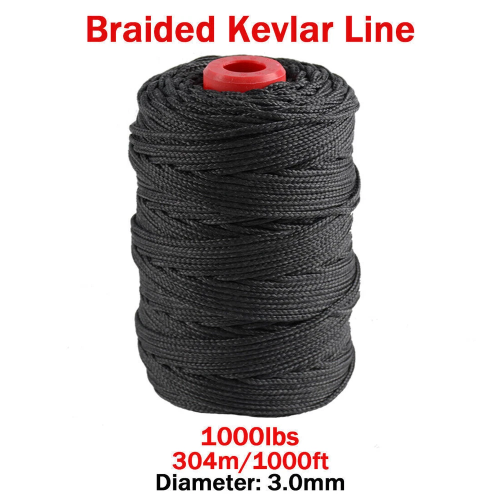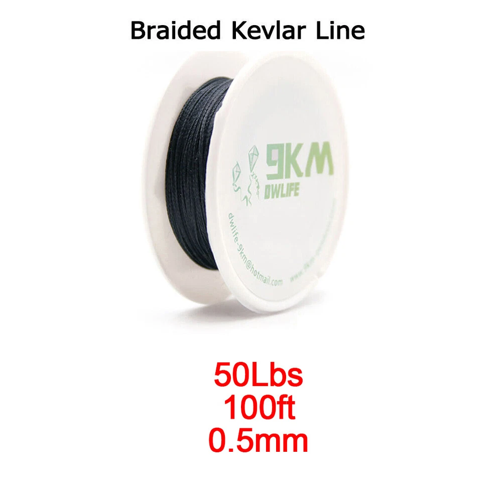 50lb-1500lb BRAIDED KEVLAR LINE Kevlar Fiber: The braided kevlar string is made of 100% kelvar fiber which is of high strength, high harness, high toughness and high abrasion resistance. Construction of Braid: Multi-strands interweaving process makes the string / cord much more durable, and it won't unravel like twisted line. Tough String: Every kevlar fiber is of high tensile strength. It exerts much higher strength in the same diameter. Cut-Resistance: One of the best advantages of Kevlar string. It helps avoid many unexpected string snaps which happen a lot in binding and fastening objects with sharp edges. Application: We provide strings from 100lb to 1500lb to meet different requirements, like, fishing, camping / hiking equipment fastening, usual outdoor line, plant support, gardening work, decoration hanging, creative projects, etc. Strength - Diameter - Weight per Meter: Approximately ±2~3% deviation exists in measurement. AMAZING Black COLOR! Great for outdoors Light weight, high tensile strength and small diameter make Kevlar cordage a great choice for below activities: Kites Flying String / Fishing Assist Line Large Model Rocket Cord / Speargun Shooting Line Camping Tarp Ridge Lines / Ultralight Backpacking Climbing / Rigging Sling / Survival Gear / Emergency Repair Cord Hiking Equipment Fastening / Tent Guy Lines Plant support / Arborist accessories Gardening Work / Decoration Hanging / Mason's line / Creative projects, etc. Notice:Around 90% of original strength is the safety working load. It‘s testing result from line factory.