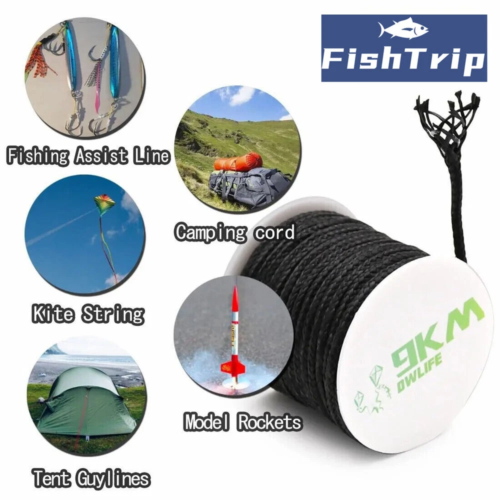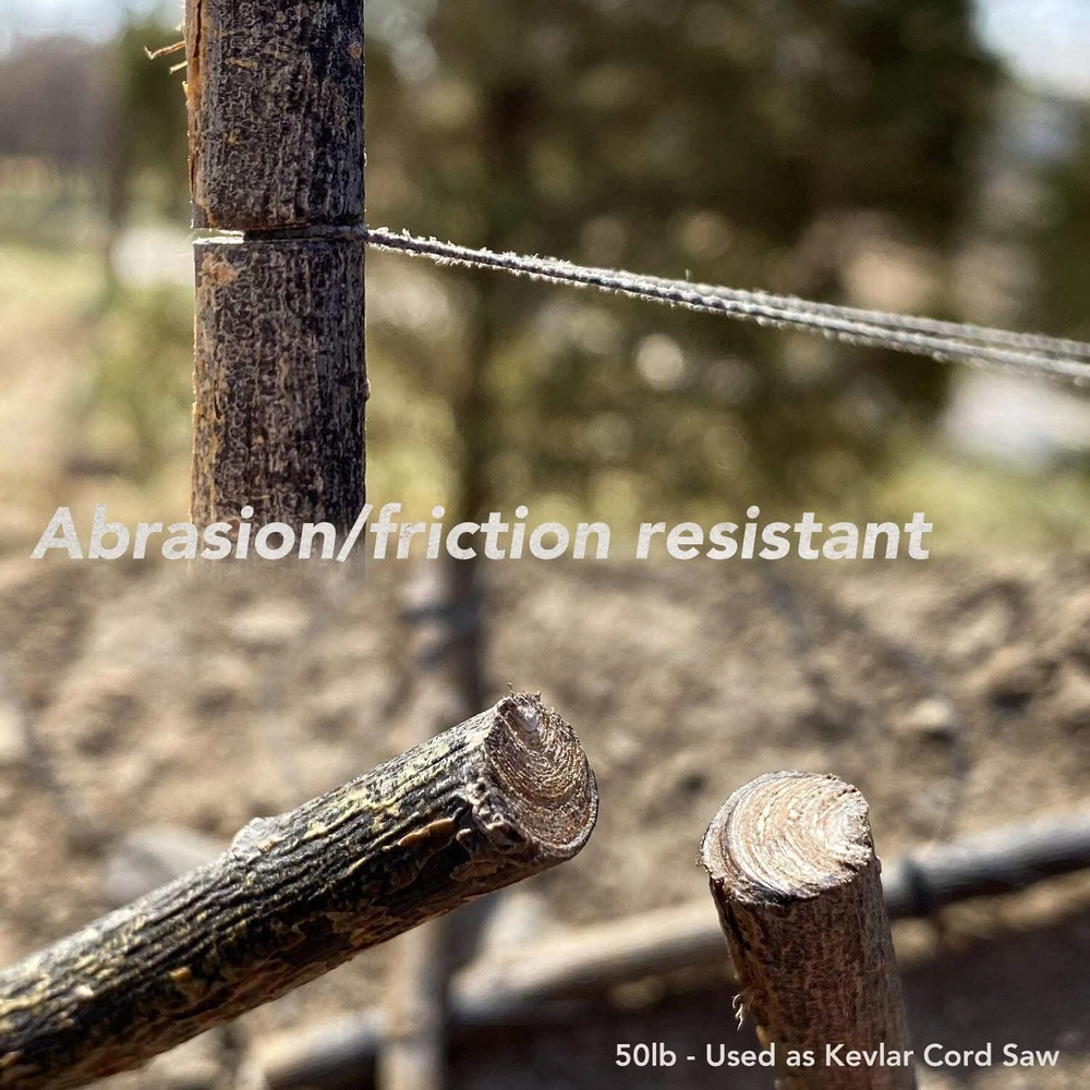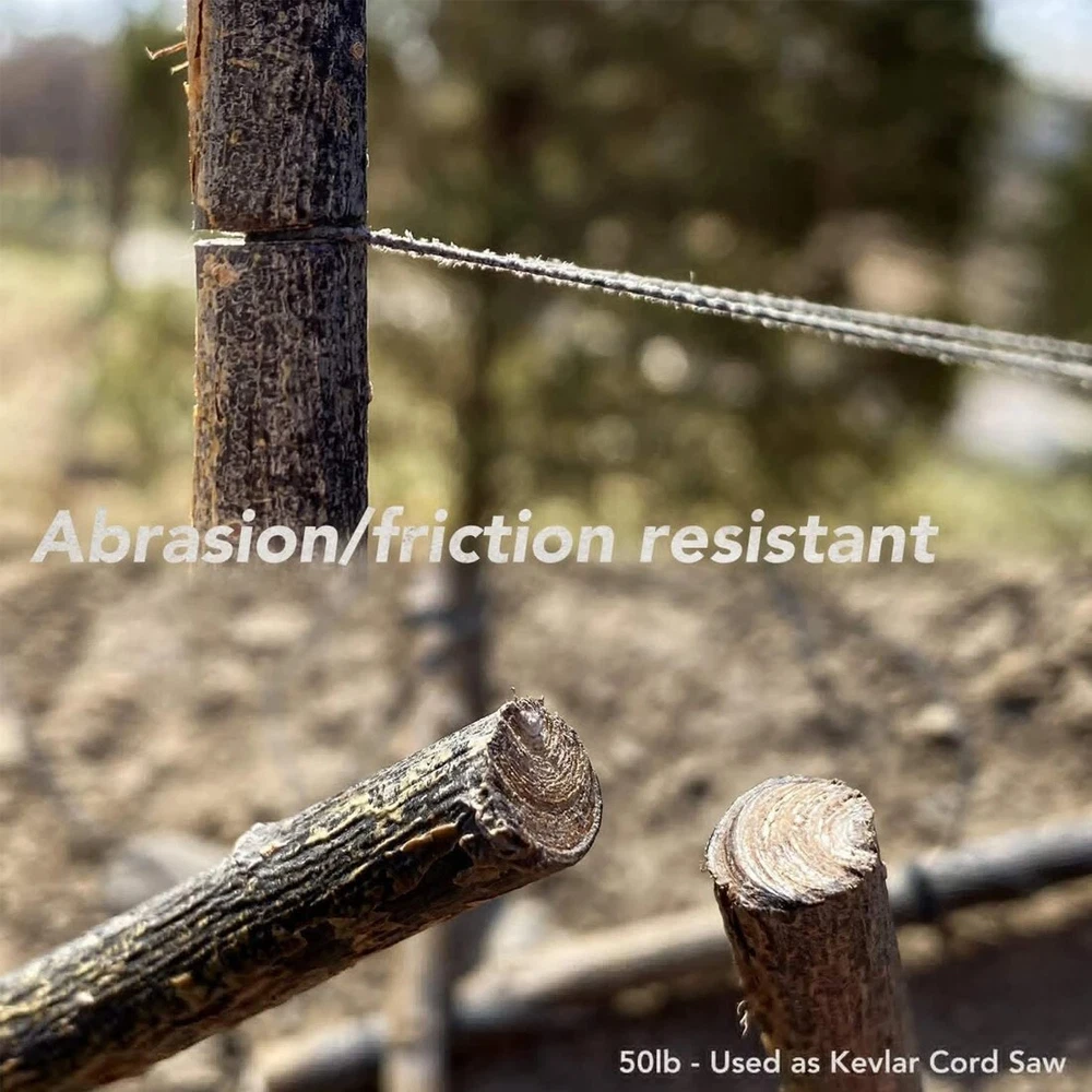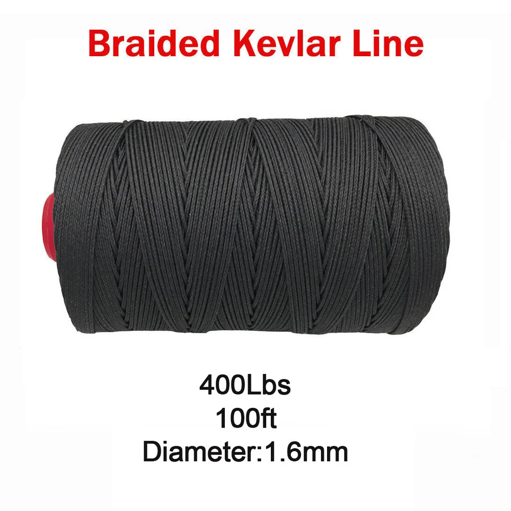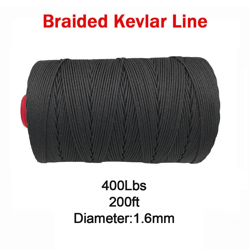 50lb-1500lb BRAIDED KEVLAR LINE Kevlar Fiber: The braided kevlar string is made of 100% kelvar fiber which is of high strength, high harness, high toughness and high abrasion resistance. Construction of Braid: Multi-strands interweaving process makes the string / cord much more durable, and it won't unravel like twisted line. Tough String: Every kevlar fiber is of high tensile strength. It exerts much higher strength in the same diameter. Cut-Resistance: One of the best advantages of Kevlar string. It helps avoid many unexpected string snaps which happen a lot in binding and fastening objects with sharp edges. Application: We provide strings from 100lb to 1500lb to meet different requirements, like, fishing, camping / hiking equipment fastening, usual outdoor line, plant support, gardening work, decoration hanging, creative projects, etc. Strength - Diameter - Weight per Meter: Approximately ±2~3% deviation exists in measurement. AMAZING Black COLOR! Great for outdoors Light weight, high tensile strength and small diameter make Kevlar cordage a great choice for below activities: Kites Flying String / Fishing Assist Line Large Model Rocket Cord / Speargun Shooting Line Camping Tarp Ridge Lines / Ultralight Backpacking Climbing / Rigging Sling / Survival Gear / Emergency Repair Cord Hiking Equipment Fastening / Tent Guy Lines Plant support / Arborist accessories Gardening Work / Decoration Hanging / Mason's line / Creative projects, etc. Notice:Around 90% of original strength is the safety working load. It‘s testing result from line factory.