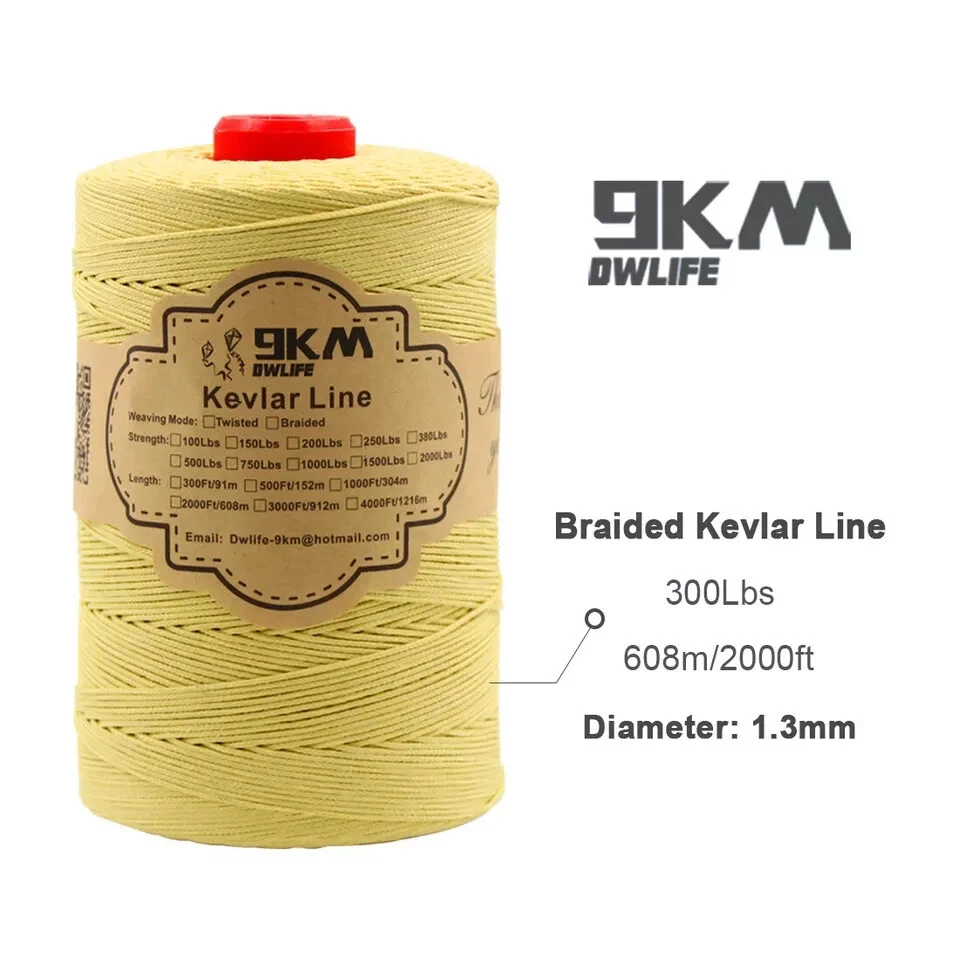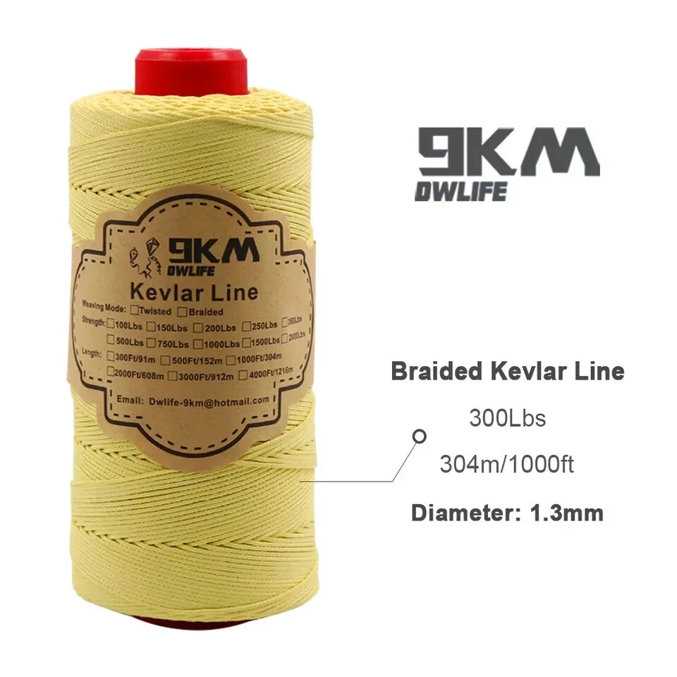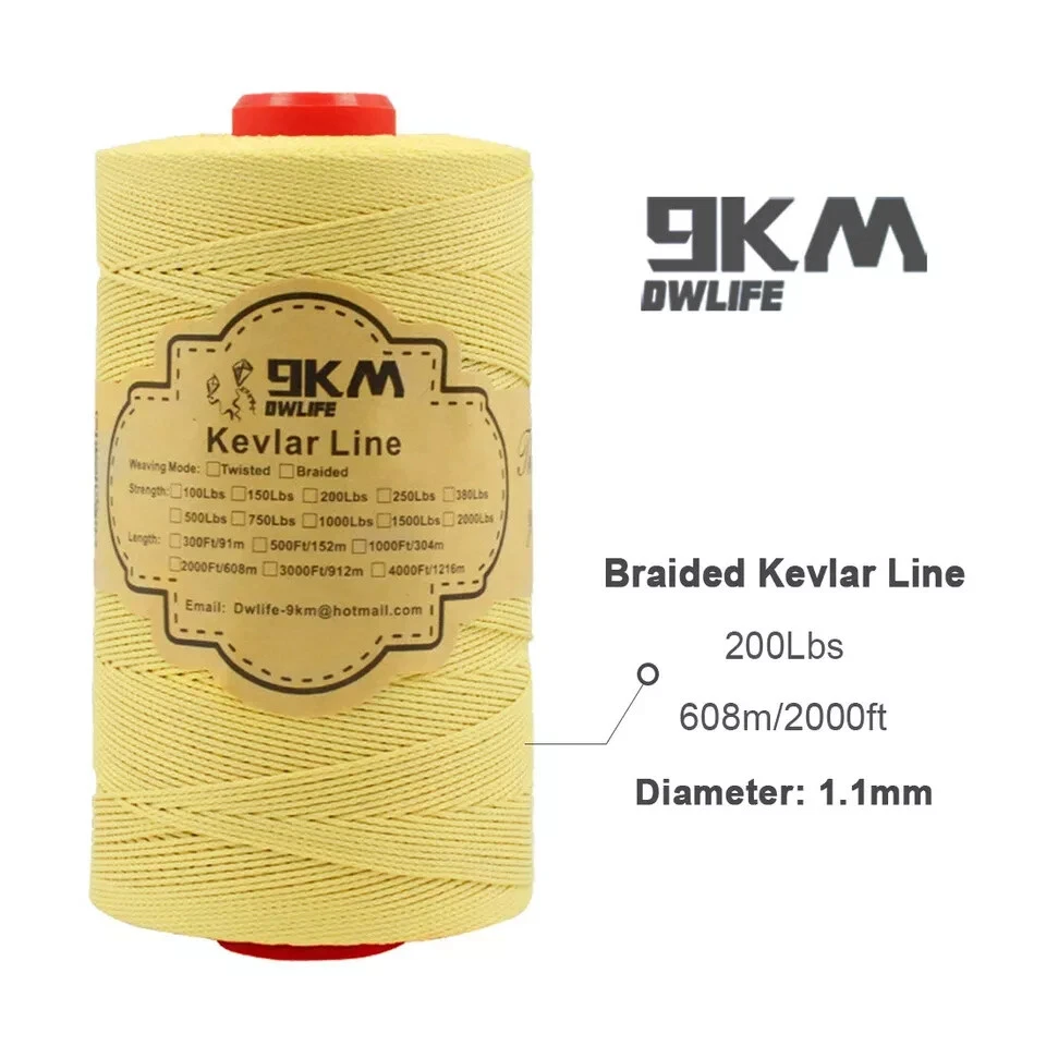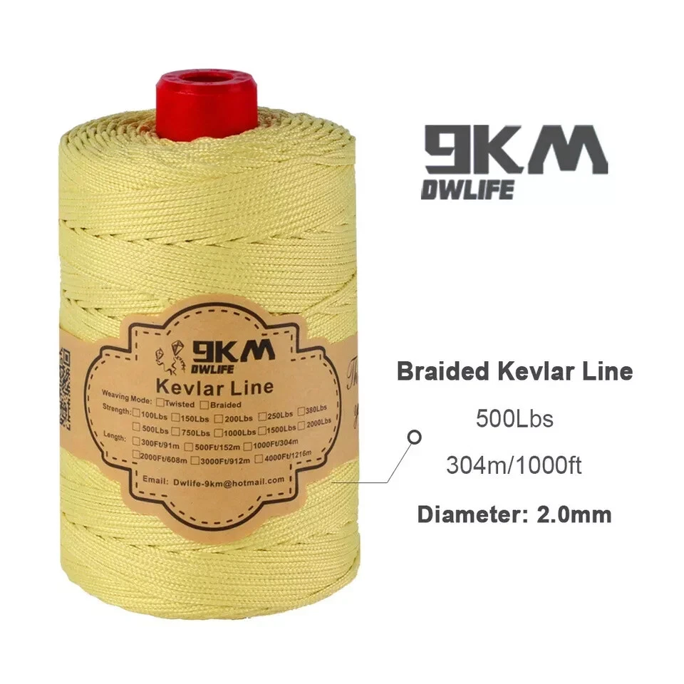 Fishing Type: Saltwater and Freshwater Fishing Breaking Strain: 40lbs~5000lbs Packaging: On the Spool Line Diameter: 0.4mm~6.8mm Line Length: 500ft/152m~2000ft/609m Character Family: Braided Kevlar Line Color: Yellow MPN: KL2000~KL3023 Brand: 9KM Line Memory: Low Country/Region of Manufacture: China Colour: Yellow Model: Fishing line,kite flying string Melting point: 800 ~ 900 ° F / 427 ~ 482 ° C Line Type: Braided Material: Kevlar fiber