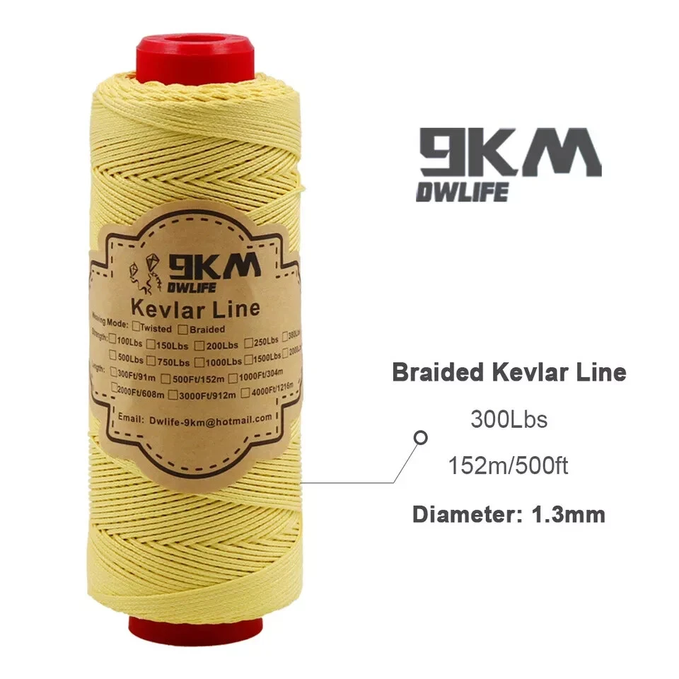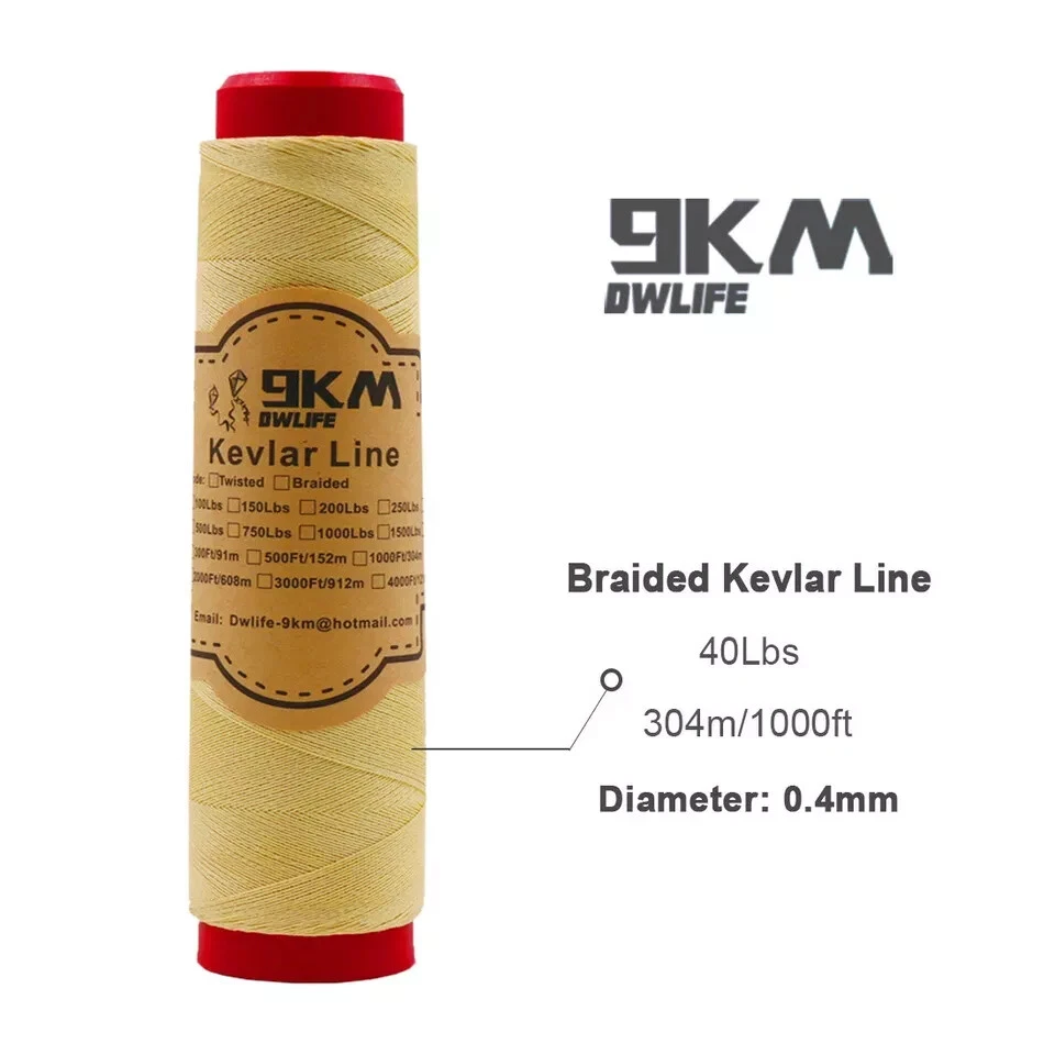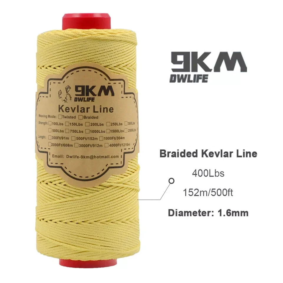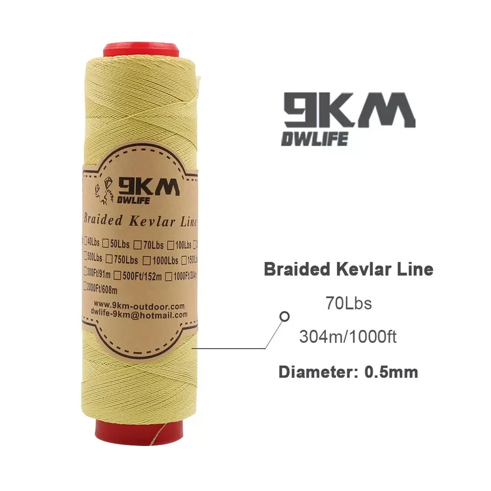 Fishing Type: Saltwater and Freshwater Fishing Breaking Strain: 40lbs~5000lbs Packaging: On the Spool Line Diameter: 0.4mm~6.8mm Line Length: 500ft/152m~2000ft/609m Character Family: Braided Kevlar Line Color: Yellow MPN: KL2000~KL3023 Brand: 9KM Line Memory: Low Country/Region of Manufacture: China Colour: Yellow Model: Fishing line,kite flying string Melting point: 800 ~ 900 ° F / 427 ~ 482 ° C Line Type: Braided Material: Kevlar fiber