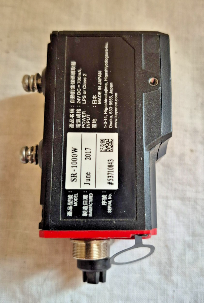 The Keyence SR-1000W Automatic Focus Code Reader is a high-quality sensor manufactured in Japan by KEYENCE. It features CMOS technology for both 1D and 2D code reading capabilities, with a resolution of 1280x1024p. This versatile code reader is perfect for industrial automation and motion control applications, offering precise and efficient data reading for various businesses and industries.