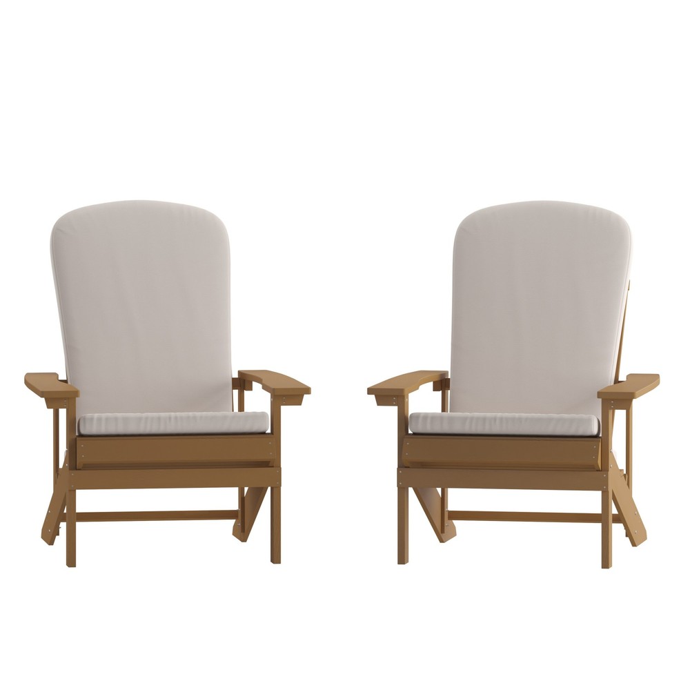 Absolutely love these Adirondack chairs! The poly resin and polystyrene construction makes them super sturdy yet lightweight, and the cushions add extra comfort. The wide design is perfect for lounging, and the teak frames give them a classy look. Great for the patio or garden—definitely worth the buy!