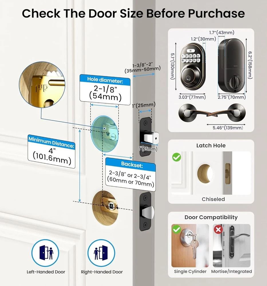 $ 17.51WiFi Smart Deadbolt Lock Keyless Entry with Handle Hornbell Secure Access