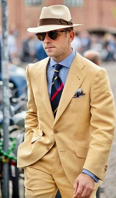 Khaki Men's Suits Leisure Summer Formal Business Wedding Groom Tuxedo Two Pieces