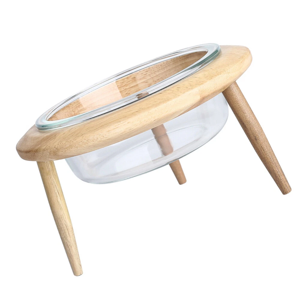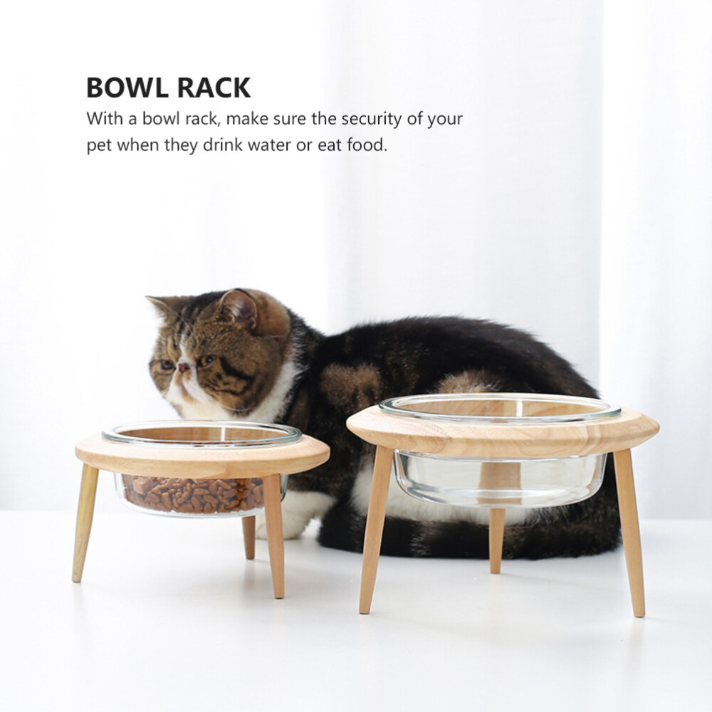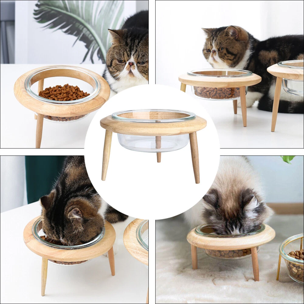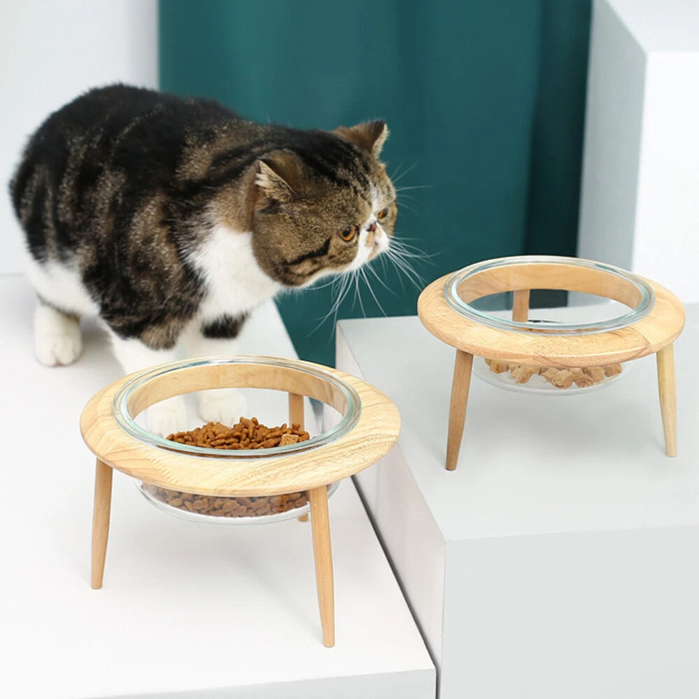 Khaki Pet Glass Bowl with Neck Protection for Cat Food and Water