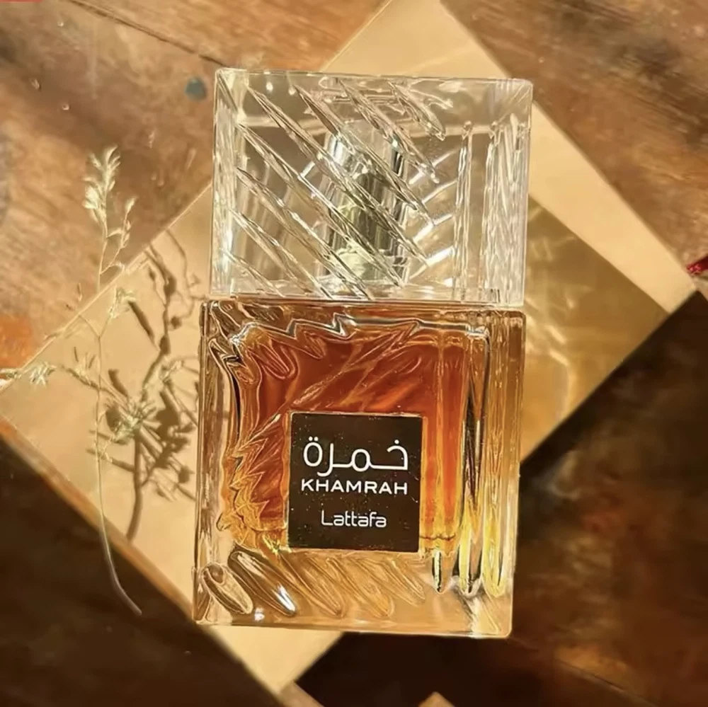 Khamrah Latefa ((ORIGINAL)) Parfum Spray For Unisex New In Box (From ((Dubai)). Khamrah by Lattafa Perfumes is a luxurious and captivating aromatic spicy fragrance designed for both men and women. This enchanting scent opens with a warm and inviting blend of cinnamon, nutmeg, and bergamot, creating a rich and spicy introduction that instantly intrigues the senses. At the heart, a sensual fusion of dates, praline, tuberose, and mahonial adds depth and sweetness, balancing the composition with an elegant gourmand touch. The base is a masterpiece of warmth and sophistication, featuring vanilla, tonka bean, benzoin, myrrh, amberwood, and akigalawood, leaving a lingering, velvety trail that exudes confidence and allure. Perfect for evening wear, Khamrah is an irresistible fragrance that embodies mystery, elegance, and timeless charm.