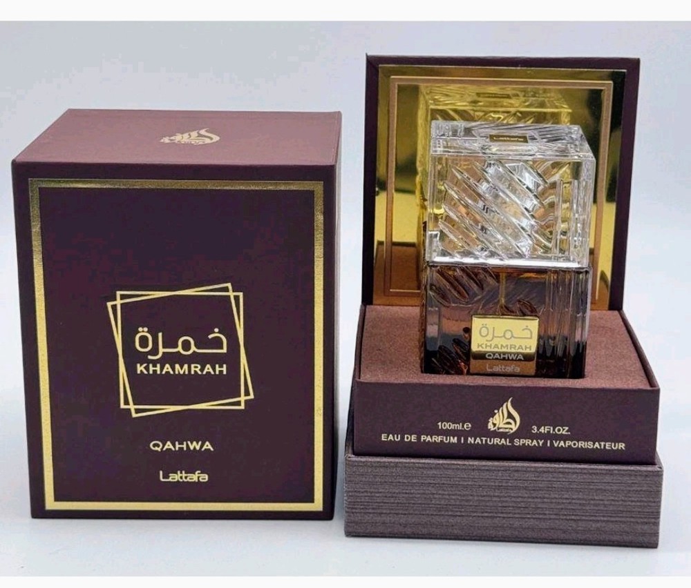 Khamrah Qahwa by Lattafa perfume for unisex EDP 3.3 / 3.4 oz New in Box.. Brand new, sealed Arabic perfume, ideal for those seeking an intense, sweet, and spicy fragrance with a unique touch of Arabic coffee (qahwa). Khamrah Qahwa is a sophisticated and captivating version, perfect for evenings, cold weather, and special occasions. Its scent is long-lasting, powerful, and highly praised, one of the most sought-after fragrances currently available in its original factory packaging, ready to ship.