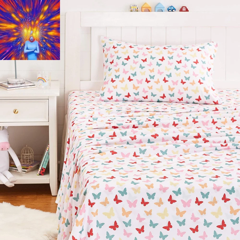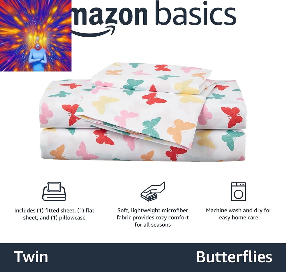 Store New Arrivals Add to Favorite View Feedback Contact Kid'S Soft Easy-Wash Lightweight Microfiber 4-Piece Sheet Set, Full, Bright Aqua, Solid Description Unit Count 1.0 Count Age Range Description Kid Item Dimensions 11 x 9.65 x 1.77 inches Color Butterflies Pattern Printed Material Polyester Material Type Polyester Item Weight 1.76 Pounds Theme Butterfly Size Twin Product Care Instructions Machine Wash Pillowcase Quantity 1 Closure Type Pull-On Seasons All Additional Features Fully Elasticized Subject Character Butterfly Style Name Sheet Set Included Components Flat Sheet, Fitted Sheet, Pillowcase 100% Polyester Imported 3-Piece Twin sheet set:Standard size twin bedding set with flat sheet,fitted sheet,and standard size pillowcase(pillows not included). Soft & Breathable: Lightweight toddler microfiber sheet set offers year-round comfort. Easy-Wash Care: For best long-term care, machine wash with similar colors on a gentle cycle with cold water. Made in Green by OEKO-TEX: An independent certification system that ensures textiles meet high safety and environmental standards. Product Dimensions: Flat sheet 66x96 inches; fitted sheet 38x74x14 inches; pillowcase 20x30 inches. Product Description Amazon Basics Kids Butterfly Friends Soft, Easy-Wash Microfiber Sheet Set - Twin, Multi-Color Butterflies From the Manufacturer Amazon Basics ABOUT US We offer the best prices around on high quality products. Our E-store includes media such as books, movies, music and games while offering electronics, toys, sporting apparel, clothing, tools, general home, garden items and more. SHIPPING We are always working hard to ensure your package arrives as soon as possible. Please understand that some factors like weather, high postal traffic, and the performance of shipping companies are outside of our control. We offer free shipping to the lower 48 states and ship within 2 business days of payment, usually sooner. We do not accept P.O. Boxes. Please provide a physical address. For shipping outside of the continental USA, we only use eBay's Global Shipping Program.The item is shipped to KY and then sent to the rest of the world. International customers are responsible for all duties and taxes. Continue to check out in order to calculate costs for shipping the item to your country. Messages regarding eBay's Global Shipping Program MUST be directed at eBay EXCLUSIVELY. RETURNS We offer a 30-Day Return Policy on items which you are not completely satisfied with. You have the option for a full-refund or an exchange of the item. No returns are available on items shipped outside of the USA. PAYMENT We accept PayPal. CONTACT US This page content is yet to come Please ad us to your favorite seller and visit again later Thank You CUSTOMER SATISFACTION We try our very best to make sure every customer is completely satisfied. If there's a problem, message us! We're happy to help. WE ACCEPT