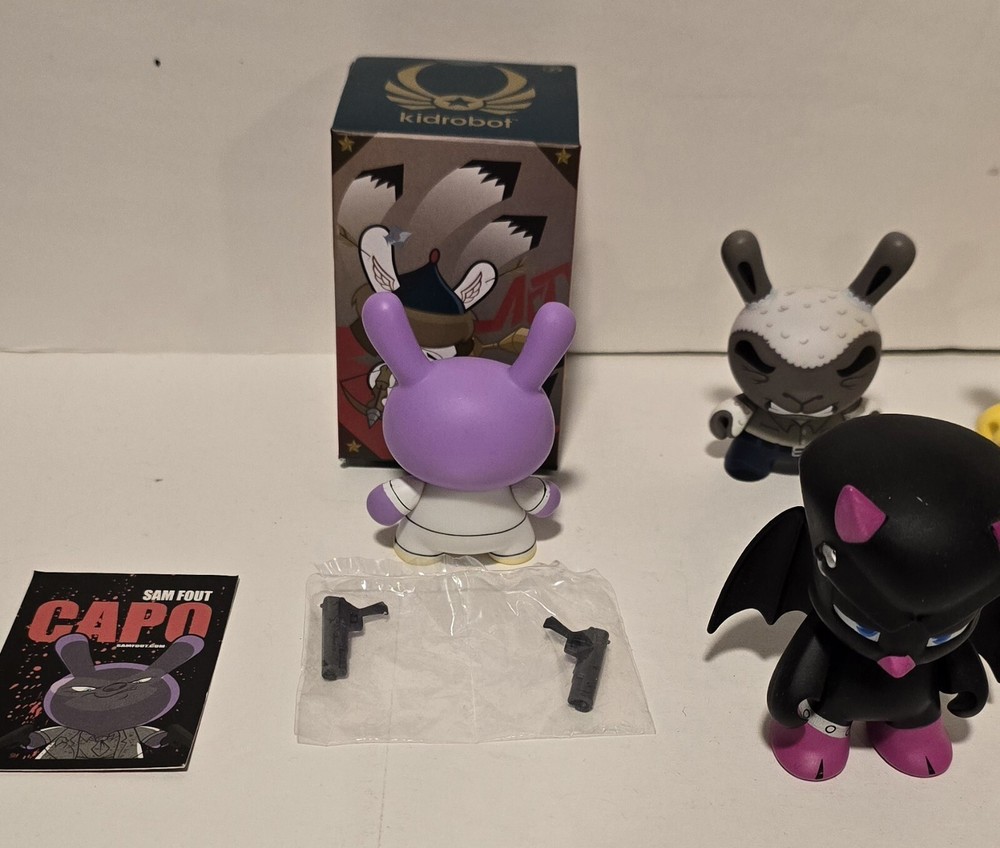 This Kidrobot Dunny Art of War/Looney Tunes Capo by Sam Fout is a must-have for fans of the iconic animated franchise. The action figure stands at 3 inches tall and features a multicolor design made of high-quality vinyl material. The figure is part of a series of 8 Dunnys, each with its own unique design and accessories. The character of Sam Fout is a rabbit species from the Looney Tunes TV show, known for his involvement in mixed martial arts. This original item is not signed and was manufactured in 2016 by Kidrobot, a well-known brand in the action figure industry. The item includes a gun accessory and is suitable for ages 15 and up. Add this rare and unique item to your collection today!