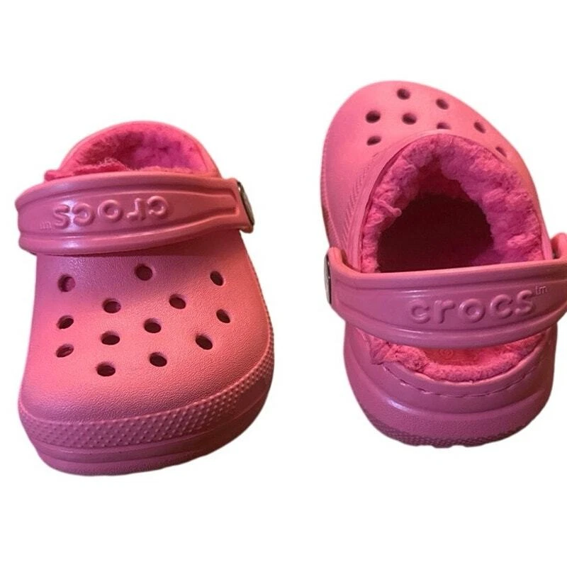 These Kids’ Crocs Classic Fuzz Lined Clogs in pink, size 5C, are in excellent used condition (EUC). They may show minor signs of wear, but nothing that affects functionality. Please review photos and ask questions if needed—it’s your job to ensure they’re right for you! Features: • Croslite™ upper with round toe clog style • Slip-on with pivoting heel strap • Cozy faux-fur lining for warmth and comfort • Customizable with Jibbitz™ charms • Dual Crocs Comfort™ and Croslite™ foam construction • Non-marking outsole for grip on multiple surfaces Retail 45$