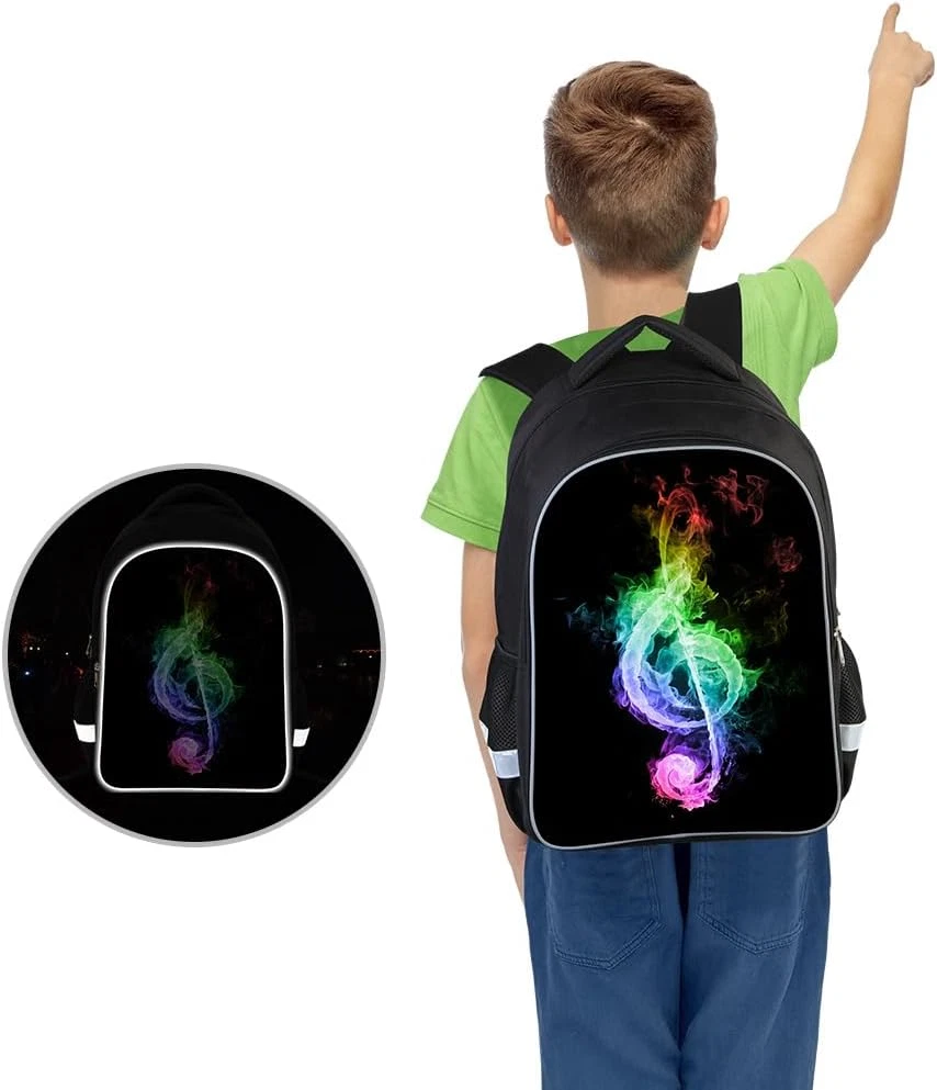 Durable Materials: Made from 600D polyester for long-lasting use; resists wear and tear from daily activities Glow-in-the-Dark Strips: Luminous strips provide visibility at night; enhances safety for kids walking in low light Waterproof Design: Protects contents from rain and spills; keeps books and belongings dry Multilayer Storage: Multiple compartments offer organized storage; ideal for books, lunchboxes, and school supplies Ergonomic Straps: Adjustable shoulder straps ensure a comfortable fit; ergonomic design reduces strain on the back Product Description 3D Reflective Cartoon Kids Backpack SchoolBag Parameter Information Dimensions: (L) 17.3" x (W) 5.5" x (H) 11" Weight: 1lb Product Introduction This unique backpack is perfect for boys aged 5-8 and features an eye-catching 3D cartoon design that reflects light, enhancing your child's visibility to ensure their safety during early morning or late evening walks. Safety 3D Reflective Design This unique backpack is perfect for boys aged 5-8 and features an eye-catching 3D cartoon design that reflects light, enhancing your child's visibility to ensure their safety during early morning or late evening walks. Different Angle Display Adjustable backpack shoulder straps and ergonomic design protect children's cervical vertebrae and slow down the pressure on shoulders and neck. Our products enjoy lifelong after-sales service, logistics or product problems are included. Multilayer Storage It features two spacious main compartments and an inner divider, perfect for storing books, toys, and school supplies. Water Bottle Storage The two side pockets are ideal for holding water bottles and umbrellas, ensuring your child has everything they need at their fingertips. Details Comfortable Handle Convenient Dual Zippers Adjustable Shoulder Straps Ergonomic Designed with a breathable back panel, which helps reduce pressure on child's neck and shoulders. Side-view Cool space style design, reflective safety protection at night. Large capacity compartment Multi-compartment and multi-pocket design, large-capacity storage, easy to distinguish between categories of items.