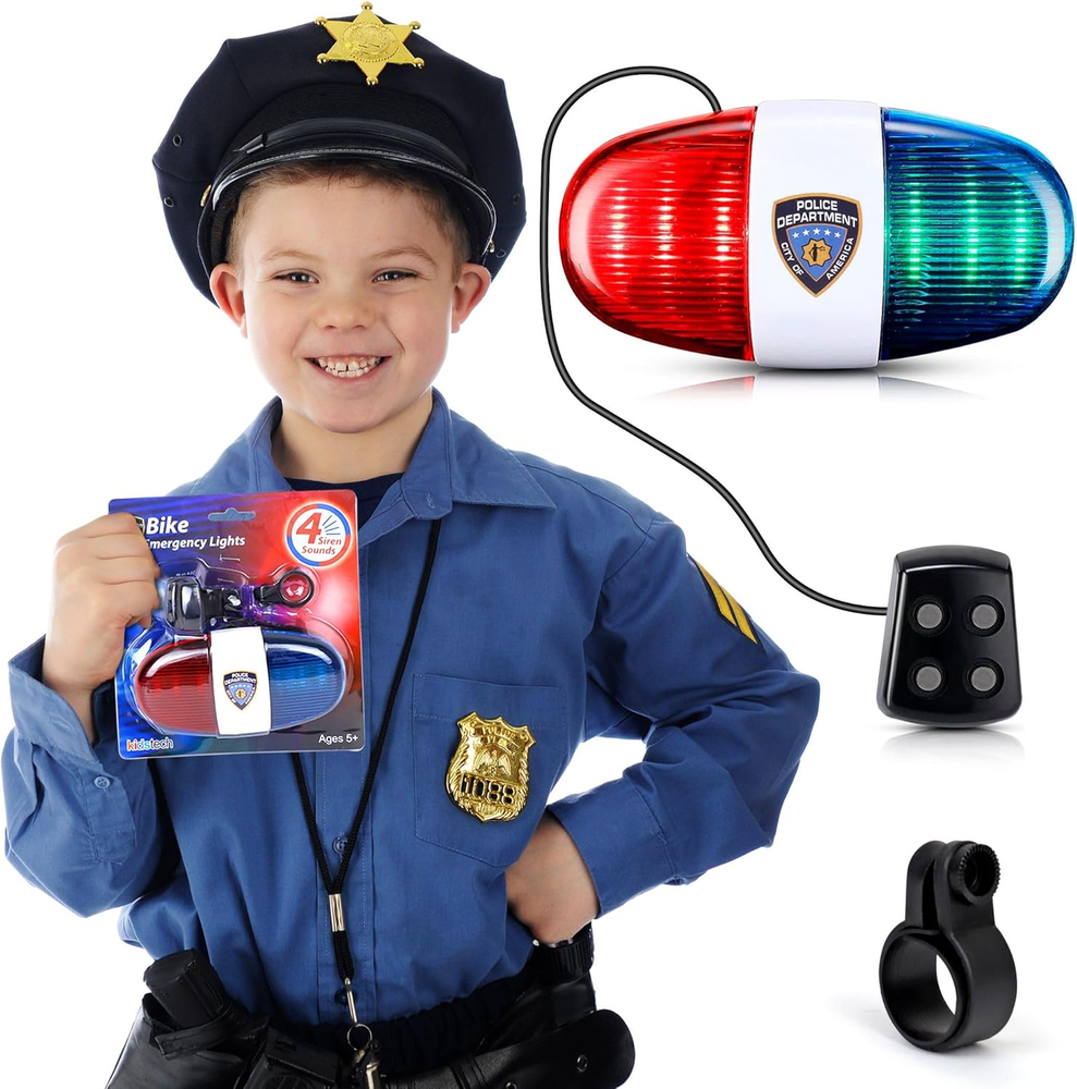 Kids Bike LED Light with Police Siren and Electronic Horn - 5 Modes