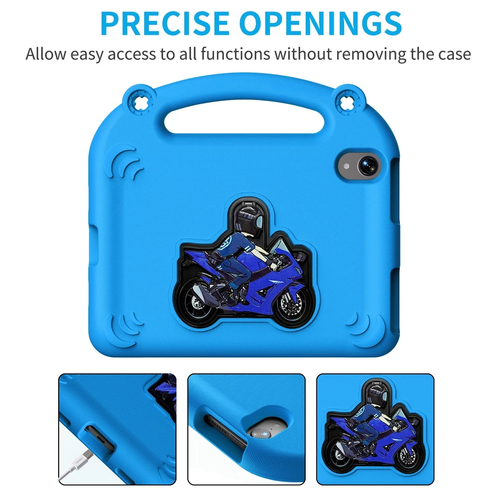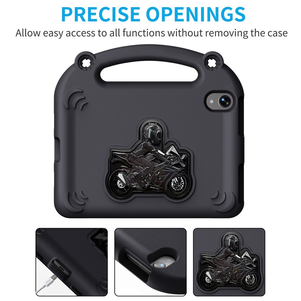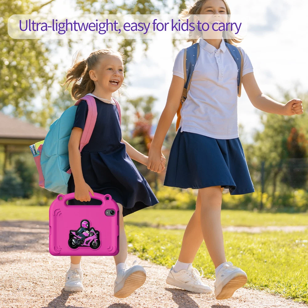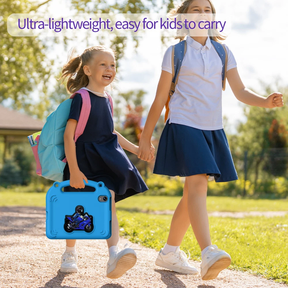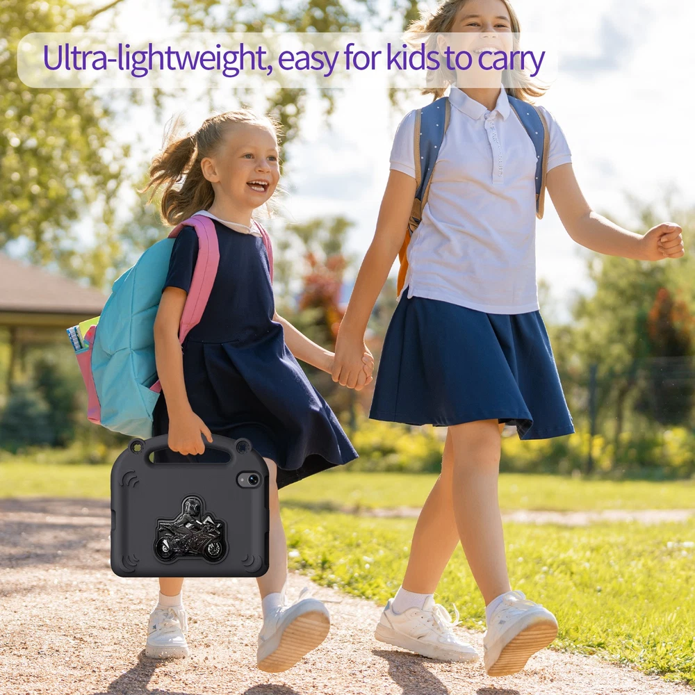 Features: 1. Perfect,high quality Tablet case. 2. Made of high quality EVA material. 3. Fashion design, easy to put on and easy to take off. 4. Case Kids with built in Motorcycle Stand,Distinctive yet full of childlike charm. 5. The one-handed grip and design make it easy to carry and travel, especially for your little one. 6. Perfectly fits the shape. 7. Protect your equipmentfrom dust, scratching and shock. 8. Protect your valuable investment from scratch and damage. Packaging: 1 x For Mini 8.3" Cas e Cover Christmas Gift (Case cover only; does not include tablet, tablet screen protector, or pencil) Please check back bottom of your iPad to find one of these model numbers Choose Model Name iPad Model Number Screen Size(inch ) For iPad Mini (6th 8.3"2021) A2567/A2568/A2569 8.3 For iPad Mini (A17 Pro) 2024 A2995/A2996 8.3 For iPad 5th Gen (9.7"2017) A1822/A1823 9.7 For iPad 6th Gen (9.7"2018) A1893/A1954 9.7 For iPad Air 1(9.7"2013) A1474/A1475/A1476 9.7 For iPad Air 2(9.7"2014) A1566/A1567 9.7 For iPad Pro 9.7" (2016) A1673/A1674/A1675 9.7 For iPad 7th Gen (10.2" 2019) A2197/A2198/A2199/A2200 10.2 For iPad 8th Gen (10.2" 2020) A2430/A2429/A2428/A2270 10.2 For iPad 9th Gen (10.2" 2021) A2602/A2603/A2604/A2605 10.2 For iPad Air 3(10.5"2019) A2154/A2152/A2153/A2123 10.5 For iPad Pro 10.5 (2017) A1701/A1709/A1852 10.5 For iPad 10th Gen (10.9" 2022) A2696/A2757/A2777 10.9 For iPad 11" (A16) 2025 A3354 / A3355 / A3356 11 For iPad Air 4(10.9"2020) A2316/A2324/A2325/A2072 10.9 For iPad Air 5(10.9"2022) A2588/A2589/A2591 10.9 For iPad Air 11 M2 (2024) A2902/A2903/A2904 11 For iPad Air 11 M3 (2025) A3266/A3267/A3270 11 For iPad Pro11 2018 A1979/A1980/A1934/A2013 11 For iPad Pro11 2020 A2228/A2068/A2230/A2231 11 For iPad Pro11 2021 A2301/A2377/A2459/A2460 11 For iPad Pro11 2022 A2759/A2435/A2761/A2762 11 For iPad Pro 11 M4 (2024) A2836/A2837/A3006 11