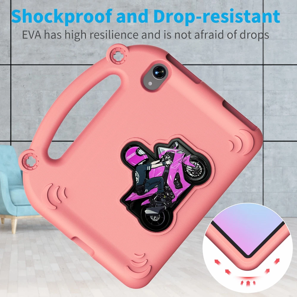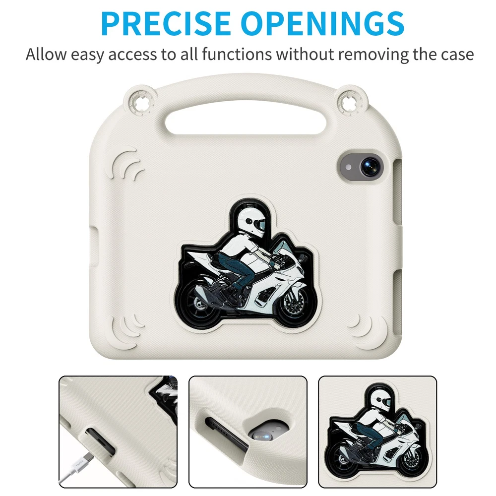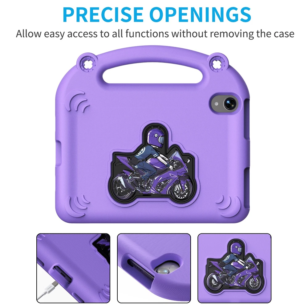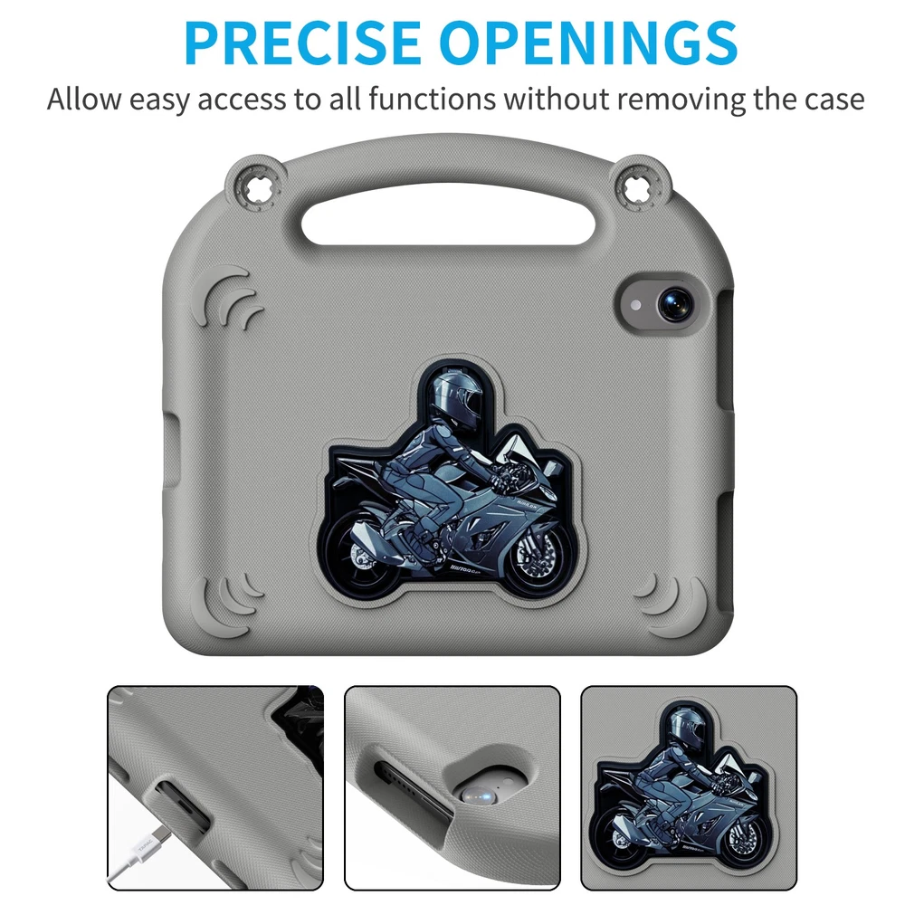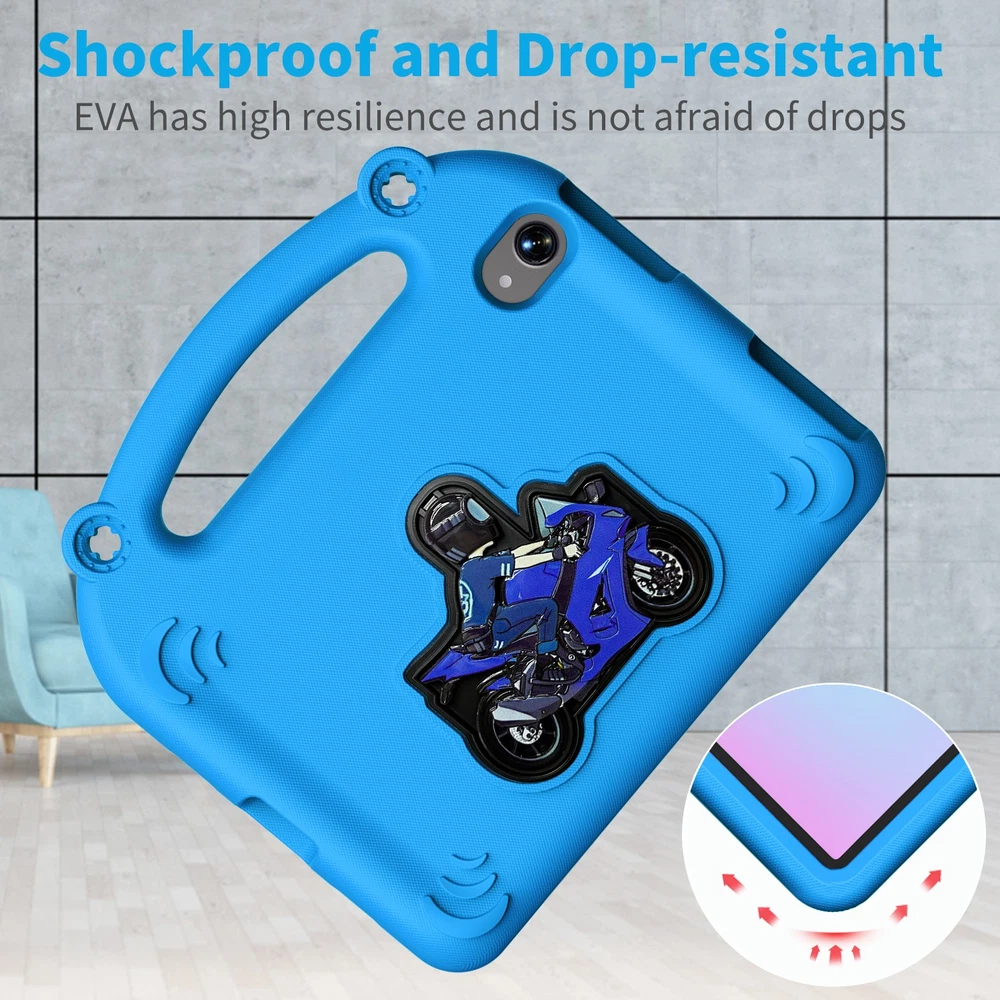 Features: 1. Perfect,high quality Tablet case. 2. Made of high quality EVA material. 3. Fashion design, easy to put on and easy to take off. 4. Case Kids with built in Motorcycle Stand,Distinctive yet full of childlike charm. 5. The one-handed grip and design make it easy to carry and travel, especially for your little one. 6. Perfectly fits the shape. 7. Protect your equipmentfrom dust, scratching and shock. 8. Protect your valuable investment from scratch and damage. Packaging: 1 x For Mini 8.3" Cas e Cover Christmas Gift (Case cover only; does not include tablet, tablet screen protector, or pencil) Please check back bottom of your iPad to find one of these model numbers Choose Model Name iPad Model Number Screen Size(inch ) For iPad Mini (6th 8.3"2021) A2567/A2568/A2569 8.3 For iPad Mini (A17 Pro) 2024 A2995/A2996 8.3 For iPad 5th Gen (9.7"2017) A1822/A1823 9.7 For iPad 6th Gen (9.7"2018) A1893/A1954 9.7 For iPad Air 1(9.7"2013) A1474/A1475/A1476 9.7 For iPad Air 2(9.7"2014) A1566/A1567 9.7 For iPad Pro 9.7" (2016) A1673/A1674/A1675 9.7 For iPad 7th Gen (10.2" 2019) A2197/A2198/A2199/A2200 10.2 For iPad 8th Gen (10.2" 2020) A2430/A2429/A2428/A2270 10.2 For iPad 9th Gen (10.2" 2021) A2602/A2603/A2604/A2605 10.2 For iPad Air 3(10.5"2019) A2154/A2152/A2153/A2123 10.5 For iPad Pro 10.5 (2017) A1701/A1709/A1852 10.5 For iPad 10th Gen (10.9" 2022) A2696/A2757/A2777 10.9 For iPad 11" (A16) 2025 A3354 / A3355 / A3356 11 For iPad Air 4(10.9"2020) A2316/A2324/A2325/A2072 10.9 For iPad Air 5(10.9"2022) A2588/A2589/A2591 10.9 For iPad Air 11 M2 (2024) A2902/A2903/A2904 11 For iPad Air 11 M3 (2025) A3266/A3267/A3270 11 For iPad Pro11 2018 A1979/A1980/A1934/A2013 11 For iPad Pro11 2020 A2228/A2068/A2230/A2231 11 For iPad Pro11 2021 A2301/A2377/A2459/A2460 11 For iPad Pro11 2022 A2759/A2435/A2761/A2762 11 For iPad Pro 11 M4 (2024) A2836/A2837/A3006 11