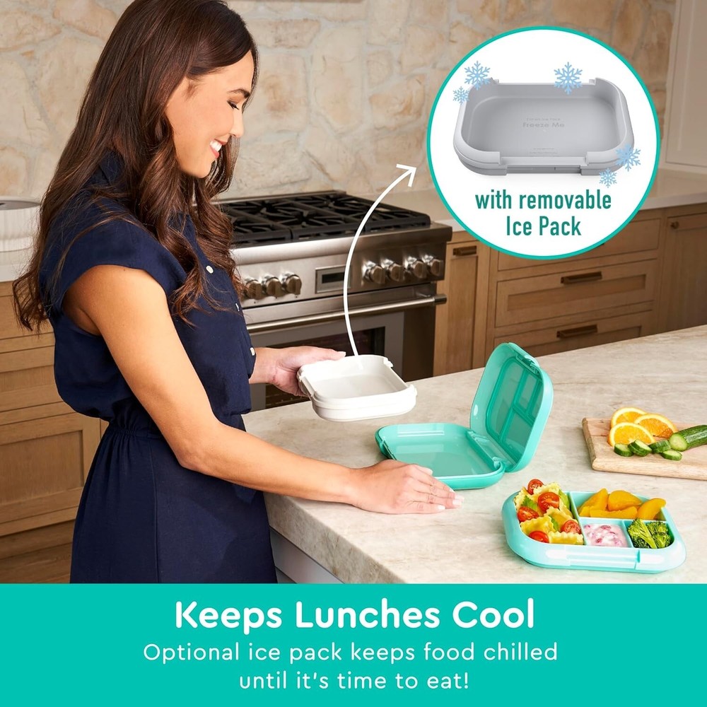 Kids Chill Leak-Proof Lunch Box - Included Reusable Ice Pack Keeps Food Cold; 4-Compartment Bento Lunch Container; Microwave/Dishwasher Safe; 2 Manufacturer's Aqua Keeps Lunches Cool: No need to buy extra ice packs! Our lightweight and reusable bento lunch box for kids has a patented design with a removable ice pack to keep food cool longer. Simply pop the ice pack into the freezer the night before and add it underneath the lunch box tray when your kids are ready to get out the door. Plus, our industry-leading 2- manufacturer’s satisfaction protects your purchase for long-lasting use. Number One Lunch Box product: This durable bento box comes from America’s favorite, award-winning product that’s designed to make mealtime fun. Kids Chill is made of eco-friendly, BPA-free materials that are safe for children and is recommended for toddlers and kids ages 3-7. The 4-compartment tray holds a total of 3 ⅓ cups and is great for picky eaters, as it keeps everything separated and allows parents to pack a variety of food for versatile lunch options! Leak-Proof Technology: Meals and snacks stay fresh and mess-free from kitchen to class to after-school activities. One kid-friendly latch makes it easy for small hands to open and close while enjoying their lunch during school, camp, or daycare. Plus, the durable outer shell has a rubberized edge to resist drops and cracks; making it ideal for active kids on the go! Easy To Clean, Heat, & Pack: Our reusable lunch container has a removable tray that is safe for both the top rack of the dishwasher and the microwave. For best results, we recommend hand washing the main container and ice pack. Purchase With a Purpose: continues to be a proud supporter of Feed the Children, a 501(c)(3) nonprofit that gives hope and resources for hungry children and families. Since 2017, has donated nearly $300,000 to help put an end to hunger.