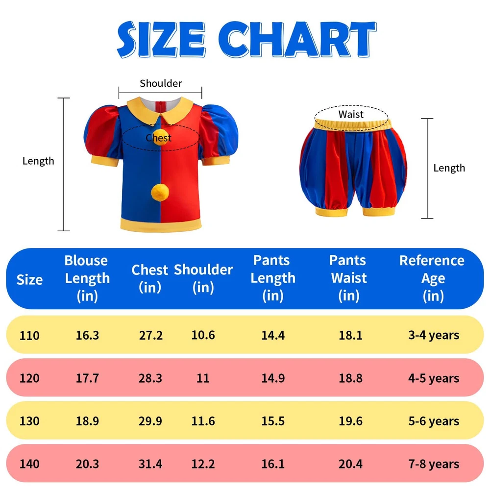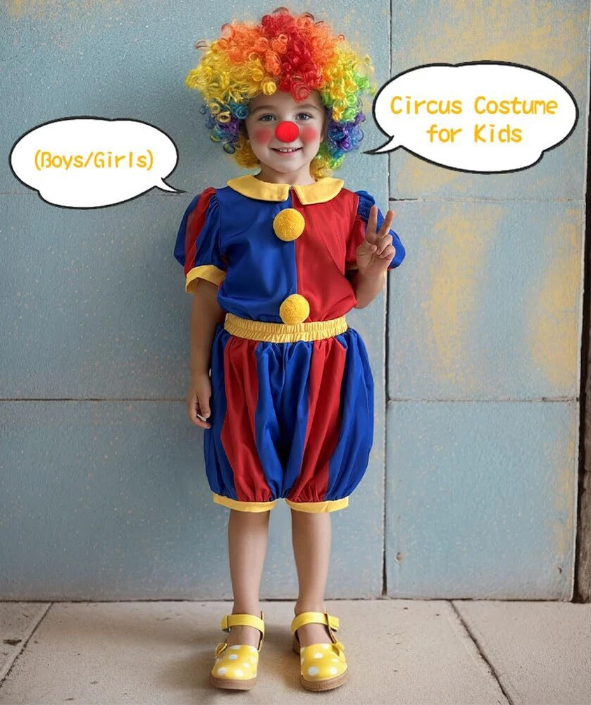 The Circus Costume for Kids is inspiration by the characters from the popular children's Series.It's an incredible costume for your little one. Carnival Circus Costume designed as a convenient two-piece set and back zipper for easy dressing. Match with multicolored Clown wig and Red nose, make the entire Kids Circus Costume more interesting. Crafted from soft fabric for a breathable and comfortable feel.Let your kids enjoy themselves pleasant in Circus cosplay time. Versatile and Fun: This Circus Clown Costume Set is a ideal for Halloween cosplay, Christmas, role play, school plays, carnivals, costume parties, and more. Circus Costume for Kids available in 4 sizes to ensure the perfect fit for your child, please check the "Size Chart" before placing an order.