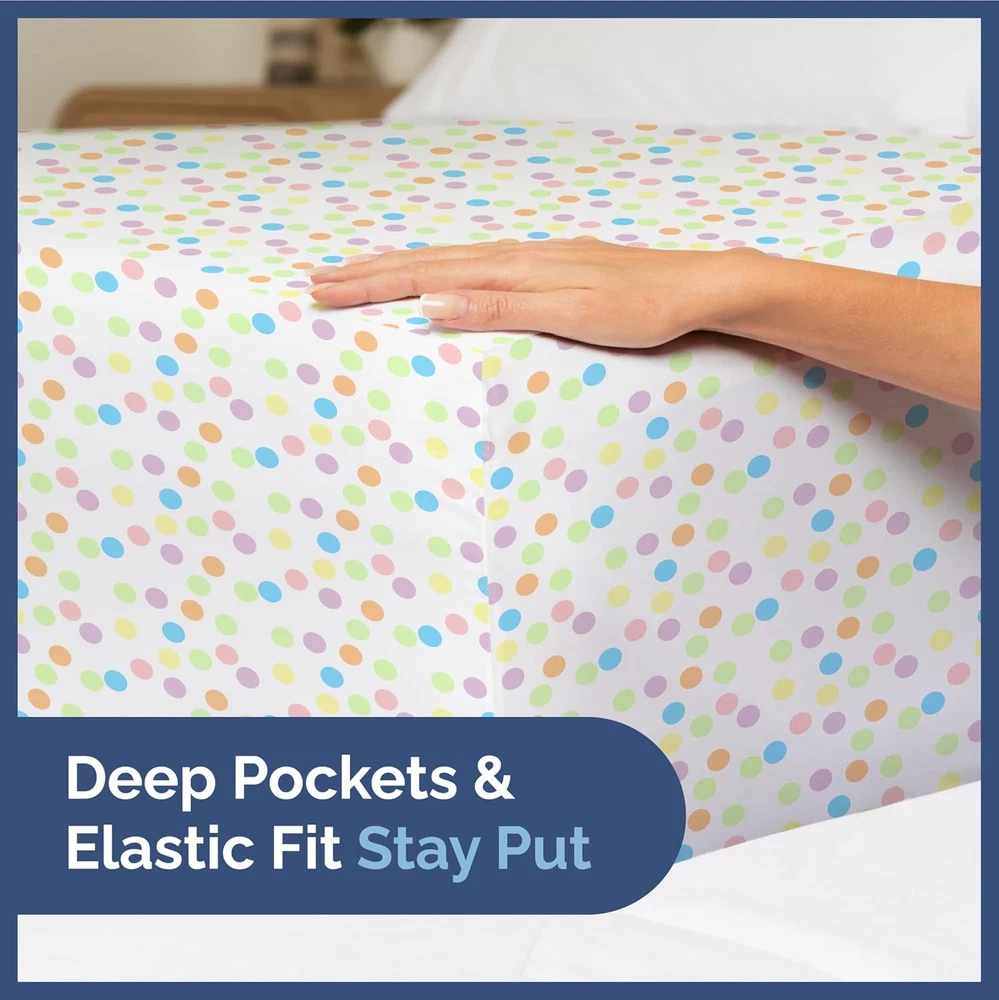 Store New Arrivals Add to Favorite View Feedback Contact Kids Dots Twin 3 Piece Sheet Set - Boys, Girls, Teens, Toddler - Easy Fit Deep Pockets - Breathable, Hotel Quality Bedding Sheets - Machine Washable - Wrinkle Free - Cute, Cozy and Soft - CGK Linens Description Item model number KidTwinMultiDots Style Kids Sheet Set Pattern Polka Dot Country of Origin China Theme Children Number of Pieces 3 Unit Count 3.0 Count Pillowcase Quantity 1 Material Microfiber Age Range (Description) Toddler Seasons All Package Dimensions 11.65 x 9.41 x 2.32 inches Closure Type Pull-On Item Weight 1.81 pounds Special Feature Wrinkle-Free Color 26 - Multicolor Dots Thread Count 200 Included Components Pillowcase, Fitted Sheet, Flat Sheet Product Care Instructions Machine Wash Size Twin FUN, BRIGHT PATTERNS, AND COLORS: CGK sheets are perfect for boys, girls, and toddlers with fun patterns making bedtime more exciting! Your son or daughter will love the vibrant and beautiful patterns, and you will love the quality! SOFT COOL AND COMFY: CGK kids’ sheets fit your child’s bedroom style and offer long-lasting quality. Made with a super soft and breathable microfiber material. Perfect for teens, toddlers, or children excited about their “big kid bed” keeping them cozy and ready for bedtime. OEKO-TEX CERTIFIED ensures that our kids' sheets are non-hazardous and safe for your children and the environment. Designed for your convenience. Bid farewell to wrinkles and ironing. Just wash, dry, and spread! With our fade-resistant quality, the vibrancy remains intact. SHEETS THAT DON’T BUDGE: Active sleeper or playful jumper, CGK sheets are here to stay. With a snug elastic fit, there’s no room for bunching or sliding. Count those sheep without any interruptions! PERFECTLY SIZED FOR YOUR LITTLE ONE: 3-piece Twin-size sheet set. Dimensions tailored to fit: 1 Flat Sheet (66″ x 96″), 1 Fitted Sheet (39″ x 75″), and 1 Pillowcase (20″ x 30″). Every piece is tailored for a snug fit. Product Description The video showcases the product in use. The video guides you through product setup. The video compares multiple products. The video shows the product being unpacked. CGK Ultra Soft Kids Sheets Add to Cart Add to Cart Add to Cart Add to Cart Add to Cart Customer Reviews 4.5 out of 5 stars 3,006 4.5 out of 5 stars 3,006 4.5 out of 5 stars 3,006 4.5 out of 5 stars 3,006 4.5 out of 5 stars 3,006 4.5 out of 5 stars 3,006 Price $28.99 $ 28 . 99 — $28.99 $ 28 . 99 $28.99 $ 28 . 99 $28.99 $ 28 . 99 $28.99 $ 28 . 99 Fits Sizes 8 to 16 Inch mattress 8 to 16 Inch mattress 8 to 16 Inch mattress 8 to 16 Inch mattress 8 to 16 Inch mattress 8 to 16 Inch mattress Easy Care Machine Washable Machine Washable Machine Washable Machine Washable Machine Washable Machine Washable Fade Proof Fade Proof Fade Proof Fade Proof Fade Proof Fade Proof Fade Proof Wrinkle Proof Wrinkle Proof Wrinkle Proof Wrinkle Proof Wrinkle Proof Wrinkle Proof Wrinkle Proof Pillowcase Closure Pillow Stay Firmly in Place Pillow Stay Firmly in Place Pillow Stay Firmly in Place Pillow Stay Firmly in Place Pillow Stay Firmly in Place Pillow Stay Firmly in Place OEKO-TEX Certified Yes Yes Yes Yes Yes Yes ABOUT US We offer the best prices around on high quality products. Our E-store includes media such as books, movies, music and games while offering electronics, toys, sporting apparel, clothing, tools, general home, garden items and more. SHIPPING We are always working hard to ensure your package arrives as soon as possible. Please understand that some factors like weather, high postal traffic, and the performance of shipping companies are outside of our control. We offer free shipping to the lower 48 states and ship within 2 business days of payment, usually sooner. We do not accept P.O. Boxes. Please provide a physical address. For shipping outside of the continental USA, we only use eBay's Global Shipping Program.The item is shipped to KY and then sent to the rest of the world. International customers are responsible for all duties and taxes. Continue to check out in order to calculate costs for shipping the item to your country. Messages regarding eBay's Global Shipping Program MUST be directed at eBay EXCLUSIVELY. RETURNS We offer a 30-Day Return Policy on items which you are not completely satisfied with. You have the option for a full-refund or an exchange of the item. No returns are available on items shipped outside of the USA. PAYMENT We accept PayPal. CONTACT US This page content is yet to come Please ad us to your favorite seller and visit again later Thank You CUSTOMER SATISFACTION We try our very best to make sure every customer is completely satisfied. If there's a problem, message us! We're happy to help. WE ACCEPT Copyright © 2021 AutoDS. | All Rights Reserved