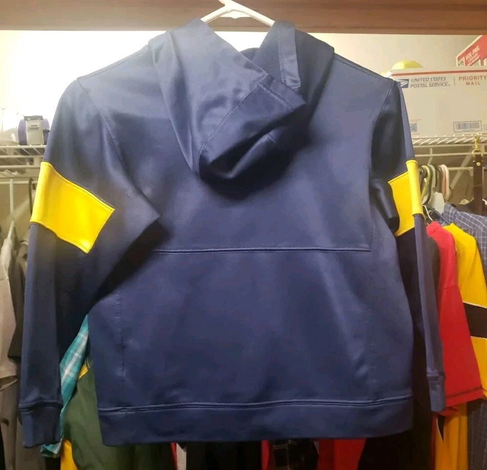 Show your support for the Michigan Wolverines with this stylish and comfortable Jordan hoodie. Made from high-quality Dri Fit material, this hoodie is perfect for game days or everyday wear. The hoodie features the team's logo prominently on the front, and is available in a size small. Whether you're a die-hard fan or just looking for a cozy piece of fan apparel, this Jordan Michigan Wolverines hoodie is a great choice. It's made in Jordan and is sure to be a hit with fans of all ages. Order yours today and show your support for the team in style!