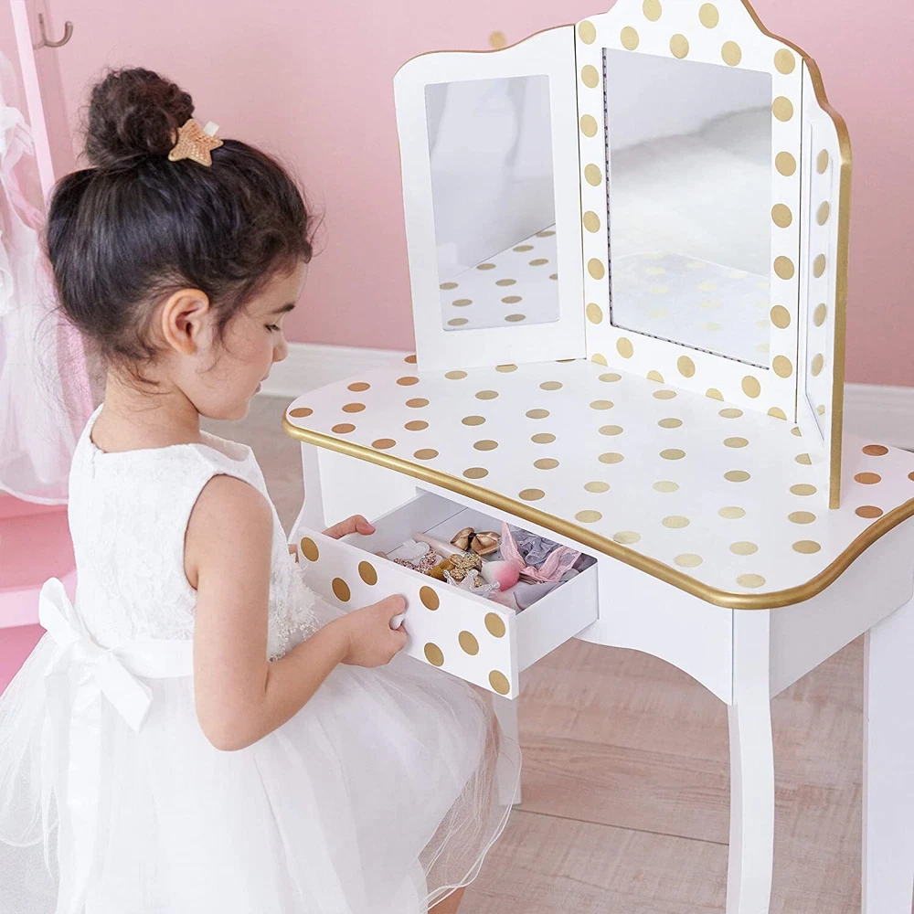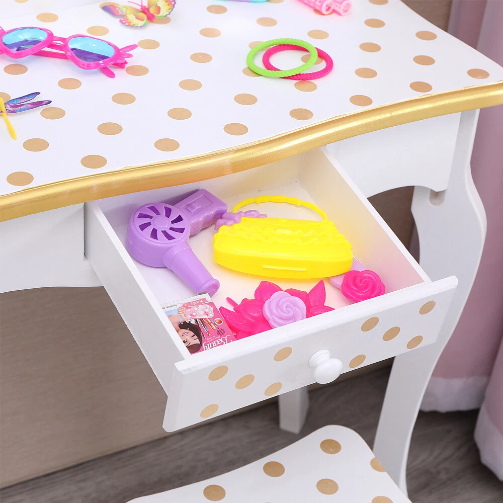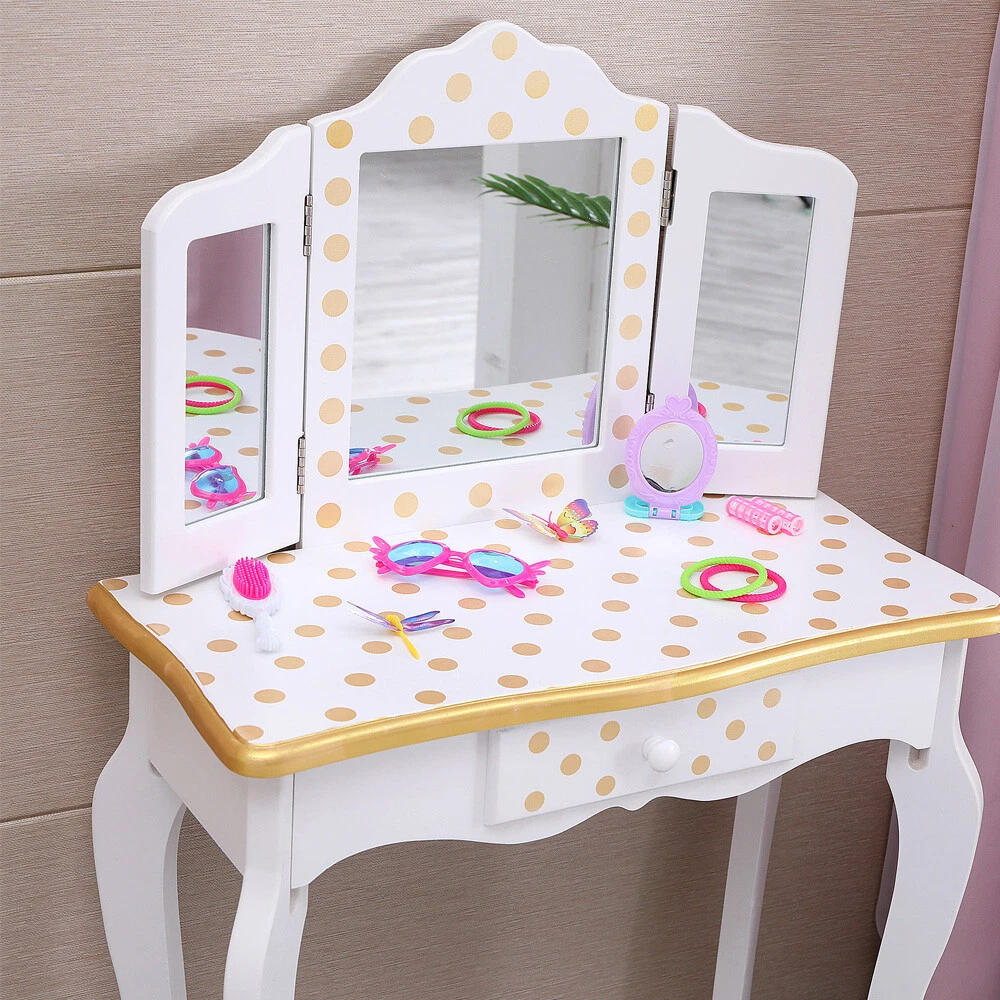 listing template Visit our store Sigh up for email Kids Girls Vanity Table Dressing Table Makeup Mirror With Drawers Children Gifts Kids Vanity Table and Stool Set CLASSIC POLKA DOT DESIGN: This beautiful vanity table and stool have a pink and white finish with polka dots for added style. Both the table and stool have rounded corners, and scalloped legs giving the vanity set a very elegant and stylish design that is very versatile and will complement a range of decor. THREE-SECTION MIRROR: Watch your little one admire their reflection as they get ready to conquer the day. The three-section mirror is made from unbreakable 3mm Plexiglas which gives a better reflection and ensures your child is safe if something was banging into the glass. SPACIOUS STORAGE: A pull-out center drawer with a knob provides a spacious storage area for storing items such as hair accessories, lip balms, stickers, jewelry, etc. to help your little one maintain a clean and tidy environment. MANUFACTURED USING PREMIUM WOOD: Crafted from high quality and eco-friendly solid wood to ensure the vanity is durable and has longevity. The solid wood frame means that both the vanity table and stool are extremely sturdy that won't be easily knocked over and is very safe for your kids to use or used around pets. EASY TO ASSEMBLE & CLEAN: The package comes with easy to follow step-by-step instructions ensuring the vanity is easy to assemble. It can be wiped down with a dry/damp cloth making it very easy to clean and maintain. Specification: Red leopard print and black make this dresser sweet and lovely; Made of solid MDF wood, sturdy and durable in use, which can hold up to 100 Ibs.; A pull-out center drawer with a knob providing spacious storage area; Its elegant round bronzed handle accentuates the super quality of the dressing table; Hardware is included, simply follow the assembly instructions; Product Size: Dresser Dimensions: (23.63 x 11.03 x 38.59)" (L x W x H) Stool Dimensions:(9.85 x 9.85 x 11.82)" (L x W x H) Color: Yellow/White Product Details: Three Way Mirror Looking for a panoramic view of your outfit, face and hair? The three way mirror on the vanity and stool set offers you nothing but the clearest of views. The three way mirror is sure to show you all sides of yourself and be sure your have the perfect look in the ball. Storage Drawer Pull out drawer slides out for extra storage for makeup, brushes, bows, or anything else important to your little ones. Round Corner & Smooth Surface The Vanity and Stool is made with sturdy, solid MDF wood. Each piece is sanded smooth before assembly and coated with a non-toxic finish that prevents scratches and scuff marks. Fashion Print Collection Give your little girl a collection of merchandise as unique as their personality with the Fashion Prints Collection. With exotic, bold patterns and colors your diva is sure to leave an impression with their new furniture pieces. Give them something to rant and rave about today and be as creative as their imaginations will take them. Package Include: 1 x Kids Vanity Table 1 x Vanity Bench 1 x User Manual You might like this more>> Baby Cradle Rocking Crib Newborn Bassinet Bed $89.96 Kids Ride on Powered Motorcycle 6V Toy Battery Electric $89.99 Desk and Chair Set Height Adjustable Kids Children's $82.90 12V Kids Ride on Truck Cars Electric Battery LED Remote $208.99 40" Saucer Tree Swing Flying 440lb Multi-Strand Ropes $41.90 White Teepee Play Tent Kids Canvas Playhouse $34.98 Shipping Policy 1. Ship worldwide from New Jersey by reliable shipping companies -- USPS, UPS, FEDEX, DHL, etc., and only to VERIFIED PAYPAL ADDRESS. Transport Delivery ETA. Package handling only takes 1 business day at our warehouse, so please make sure entering correct payment and shipping information before checking out. Once your payment is completed, we are not going to accept any more changes to your order. 2. International Buyers – Please Note: a. Import duties, taxes and charges are not included in the item price or shipping charges. These charges are the buyer's responsibility. b. Please check with your country's customs office to determine what these additional costs will be prior to bidding/buying. 3. Please check your shipping address carefully before checkout, it can't be changed if order completed. 4. Orders placed on weekend will be shipped within 2 days.Notification of shipment with tracking number will be sent to buyers. 5. Standard shipping: 2-7 business days Expedited Shipping: 2-3 business days One-day Shipping: 1 business day International shipping: Varies 6.Ship within 1 business day once payment completed. Notification of shipment with tracking No. will be sent to buyer. 7.We offer discounts for combine shipping. Please contact us first if you need combine shipping, and an invoice with discount will be sent to you. 8.Please allow 5 business days for delivery to US destinations on any eBay orders and 14 business days for delivery to any International destinations. We highly recommend our buyer choose priority/expess mail for international delivery which is much more stable. Return Policies 1. Refunds given only if item DOA and cannot be replaced via PAYPAL . If so, Please contact us with 5 days since you receive the item and and return to us within 30 days from the delivery date for exchange or refund. 2. If you need return, please contact our customer service representative, let us know the detailed problem and send us some pictures for confirmation. Payment Payment should be sent within 8(EIGHT) days of auction closing. Feedback If you are dissatisfied for any reason, please do not be quick to leave negative/neutral feedback. We work hard to make sure EVERY CUSTOMER 100% SATISFIED and resolve any problem for you. Work Time Work Time: Monday to Saturday About Us | Newsletter| Feedback| Contact Us Copyright © 2021 Yallstore. All rights reserved. 无标题文档 Kids Girls Vanity Table Dressing Table Makeup Mirror With Drawers Children Gift