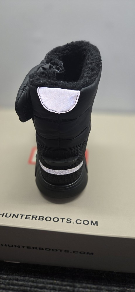 Hunter Boots Snow Boot Shoes Kids Size 2 Black Insulated Waterproof Winter Condition: Brand New without Tags -- no visible flaws, never worn Exterior is durable black synthetic/textile shell designed for protection from snow and water Plush black faux fur lining for added warmth and comfort Pull-on style with reinforced heel tab and hook-and-loop strap on back for easy fit Prominent HUNTER logo badge at front Reflective accents on heel and back for safety Thick lug rubber outsole for superior traction in icy and snowy conditions Model: BK Snow Boot, color Black (005) Size: Kids Big Kid US 2 / UK 1 / EUR 34 All original box packaging included as shown in photos Perfect for winter, cold weather, snow, and outdoor play