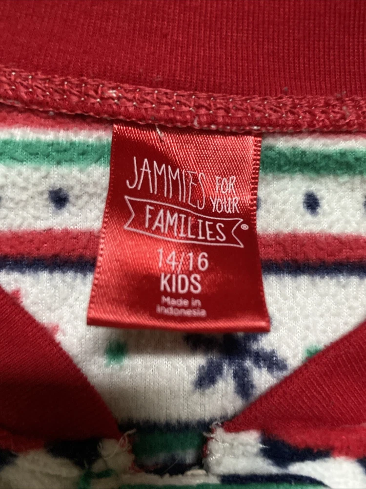 Kids Jammies For Families Size 14/16 One Piece Zip Up Holiday Fleece Pajamas. Condition is Pre-owned. Shipped with USPS Ground Advantage.