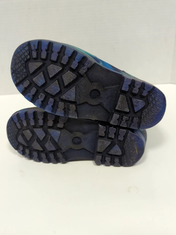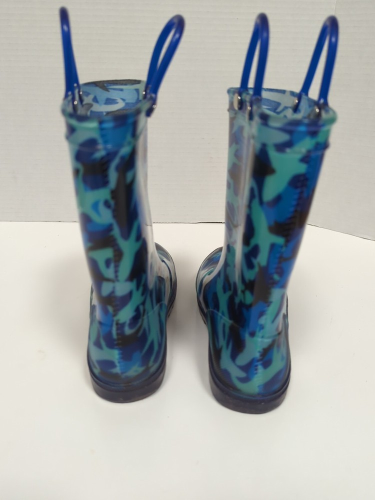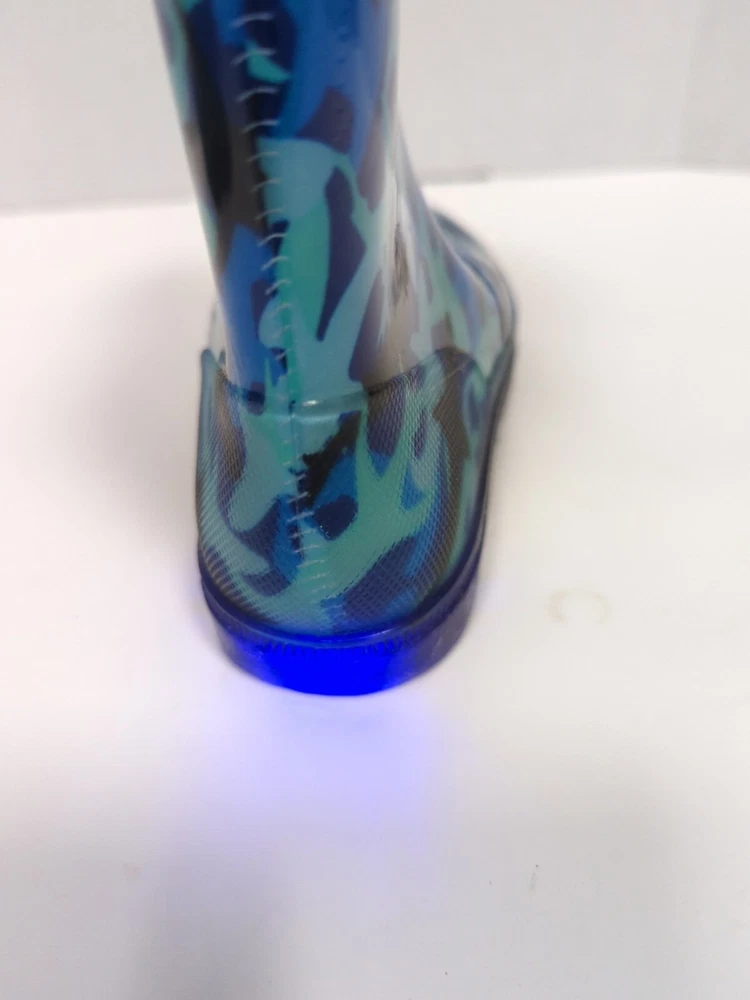 Kids Light Up Rubber Rain Boots Blue Camo Size 13 Waterproof Outdoor Play