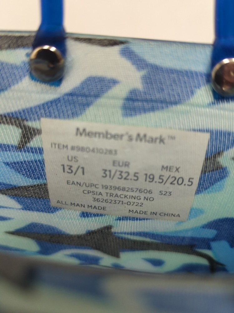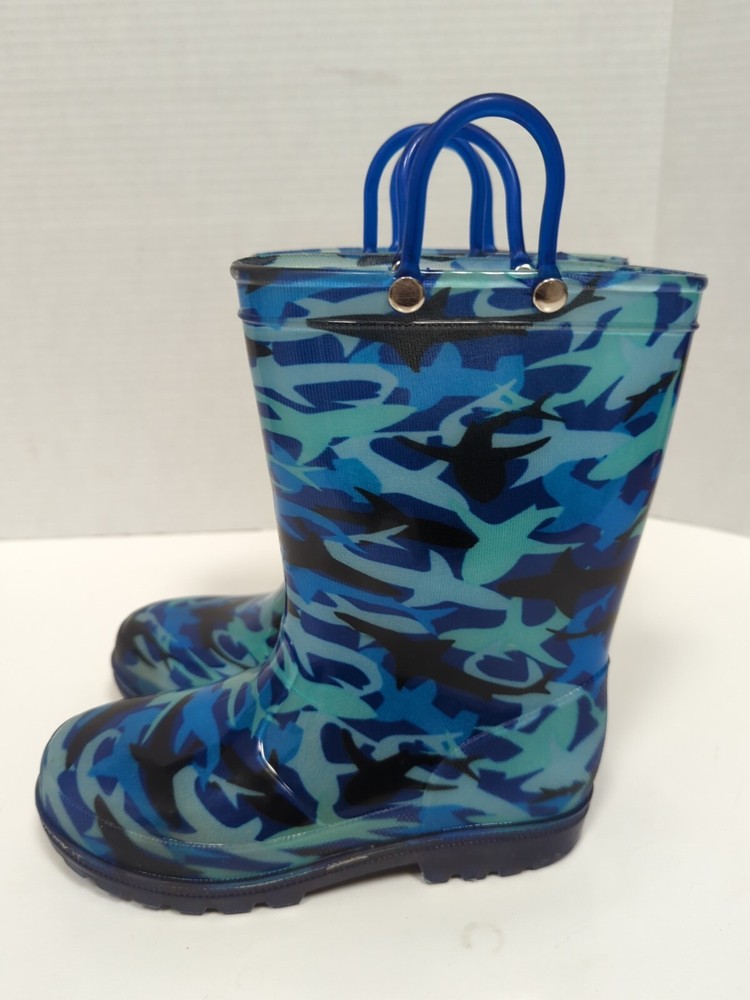 Heel Height: Flat (Under 1 in) Pattern: Camouflage Character Family: Youth Performance/Activity: Fishing, Rain, Garden , Outdoor Theme: Outdoor Season: Spring, Fall, Winter, Summer Character: Boots Heel Style: Flat Country/Region of Manufacture: China Vintage: No Style: Rain Boot Type: Boot Color: Blue Closure: Pull On California Prop 65 Warning: no Outsole Material: Rubber US Shoe Size: 13 Cleat Type: Rubber Toe Shape: Round Toe Department: Unisex Kids Upper Material: Rubber Occasion: Activewear Brand: Member's Mark Shoe Shaft Style: Mid-Calf