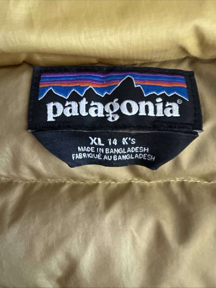 The Kids Lightweight Patagonia Puffer Jacket is a stylish and practical outerwear option for children. Made with a durable polyester outer shell and lined with cozy polyester, this jacket is perfect for keeping kids warm during the colder seasons. The puffer style adds extra insulation while the lightweight design ensures comfort. With a zip closure, long sleeves, and a solid gold color, this jacket is versatile for casual occasions and outdoor activities like hiking. The jacket also features the iconic Patagonia logo accent, making it a fashionable choice for both boys and girls.