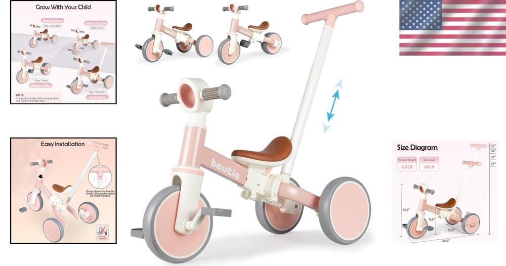 Kids Lightweight Tricycle with Removable Pedals - Ideal Gift for Toddlers ‹ › ‹ › ‹ › ‹ › ‹ › ‹ › ‹ › ‹ › ‹ › ‹ › Kids Lightweight Tricycle with Removable Pedals Ideal Gift for Toddlers Features: 5 MODES: The tricycle adapts as your child grows, switching from a Push Tricycle to a Push Balance Bike, or even a traditional Tricycle and Balance Bike. This versatile design makes it the perfect companion for your child's journey of exploration. SAFETY FIRST: Made from high-quality, BPA-free materials and finished with non-toxic paint. The 100° rotation limit on the steering handlebar prevents rollover, while the comfortable, thickened handle cover and non-slip pedals ensure thrilling yet safe rides. EASY TO ASSEMBLE & USE: Featuring a snap-in design for hassle-free installation, this toddler bike can be ready to roll in minutes without the need for any tools. The push handle height can be adjusted across four levels to maintain comfort for parents while walking alongside. RELIABLE DETAILS: Constructed with a robust carbon steel body, this lightweight tricycle is built to withstand endless adventures. The EVA foam wheels are wider for greater loads, ensuring a smooth ride both indoors and outdoors. IDEAL GIFT CHOICE: The tricycle not only offers fun but also aids in developing balance, coordination, and strength as your little one learns to steer. With a maximum load capacity of 66lbs, it’s the perfect gift for boys and girls aged 10 to 4 . Why Choose Our Kids Lightweight Tricycle? Looking for the perfect gift that combines fun, safety, and growth? Our Kids Lightweight Tricycle offers versatile modes for all stages of exploration and play. Designed with safety and comfort in mind, every ride assures joy and laughter while nurturing essential skills. Ideal for toddlers, this tricycle will be the joyful companion in countless adventures. Order the tricycle today and watch your child's confidence soar as they embark on their next thrilling ride! Shipping Free & Fast Shipping - We offer free shipping to most of the USA with a normal delivery time of 3-7 days. However, due to the current situation, additional delivery time (up to 3 weeks) may be required for some items. Alternative Carriers - We may use alternative carriers (e.g. USPS, FedEx, UPS, etc.) to ensure your package arrives safely and on time. Due to the use of multiple carriers, we are unable to provide a tracking number automatically. Handling Time - Orders are processed and shipped within 1-2 business days of receiving cleared payment. Shipping Restrictions - Shipping to Alaska, Hawaii, Puerto Rico, Guam, and other US territories may incur shipping charges or delivery restrictions. Please contact us before ordering, or your order can be refunded/cancelled. State Restrictions - There may be restrictions based on your state of purchase. For example, certain items may not be shipped to California due to state regulations. Contact for Tracking Updates - If you require tracking updates or have any concerns about the delivery of your order, please feel free to contact us, and we will be happy to assist you. Return 30-Day Hassle-Free Returns - We want you to be completely satisfied with your purchase. If you are not, you can return the item within 30 days of receiving it for a full refund or exchange. Easy Return Process - To start a return, simply contact us and we will provide you with a prepaid return shipping label and detailed instructions. Restocking Fee - There are no restocking fees for returns. However, the buyer is responsible for return shipping costs if the return is not due to a seller's error. Refund Processing Time - Refunds will be processed within 5 business days of receiving the returned item in its condition. Payment We accept all major credit cards, PayPal, and Apple Pay for your convenience. Your payment information is secure and encrypted to ensure a safe and seamless transaction. Please complete your payment within 3 days of purchase to avoid any delays in shipping. Feedback Your feedback is extremely important to us. We strive to provide the best products and customer service possible. If you are satisfied with your purchase, please take a moment to leave us a positive review. If you have any concerns or issues with your order, please contact us before leaving negative feedback. We are committed to resolving any problems and ensuring your satisfaction. Contact Us If you have any questions or concerns, please feel free to out to our customer support team. You can contact us through the eBay messaging system. We are available Monday to Friday, 9:00 am to 5:00 pm EST, and we will do our best to respond to your inquiry within 24 hours. Buy it now and enjoy a pleasant shopping experience! Recommended Age Range: 1-4 Type: Tricycle Number Of Wheels: 3 Gender: Boys & Girls