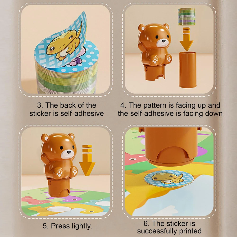 Learning Innovation: Promote your child's hands-on ability and creativity through interesting animal images and sticker stamp designs. Our Sticker Stamper provides education and entertainment simultaneously, stimulating your child's interest in learning and fostering their imagination. Increase Get Involvedment, Excite Playtime: Our Sticker Stamper lets kids create stunning designs on books, crafts and more, offering exciting rewards and interactive fun to make learning engaging and enjoyable. Simple Usage: By placing stickers in the stamp box and stamping, your child unlocks more creative options with our Sticker Stamper. Allow your child to express themselves and imagination freely without any messy or complex processes. It's effortless and fun to use, so your child will love the vibrant designs they can create. Inspires Artistic Expression: Embolden children to show their creativity with Sticker Stamper, inspiring unique stories and pictures, while enhancing their narrative skills through a picture book filled with pre-set scenarios. Charming Present: Offering quality learning rewards, the Sticker Stamper is an gift for girls and boys on special occasions like birthdays, Halloween and Christmas, providing more creative fun and empowering children to develop fine motor skills. Check out our Stamp Stickers for Kids! Designed with clear and beautiful reward forms, these stickers encourage your child to create freely. The accompanying picture book provides pre-set scenarios for learning rewards and more. Get the perfect tool to enhance your child's creativity and imagination! Specification: Product name: Sticker Stamper Styles: Penguin, Brown Bear, Frog (400 stickers + stamp machine + pasteable album) Stamp size: about 6x13cm/2.36x5.12 inches Packaging size: about 9.5x4.5x11cm/3.74x1.77x4.33 inches Packing List: Stamp x1 Adhesive album x1 Stickers x 400 Note: Due to different lighting and screen settings, the item color may be slightly different from the picture. Due to different manual measurements, please allow a 1-2cm difference in size.