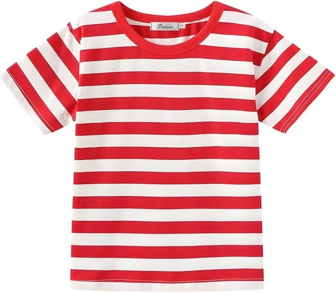 About this item 【Soft Material】The T-shirt is made of high-quality polyester fabric, which is skin friendly, soft, breathable and not easy to wrinkle. 【Versatile for Daily】Short sleeved styles can be used with many types of pants, Jeans and outfits, very suitable for school days, parent-child activities, campus, outdoor, leisure and other occasions to wear. 【Halloween Costume】This stripe shirt is perfect for Pugsley Addams Costumes, Mr. SMEE Stripes Tee, Where's Waldo Costumes and Calvin Hobbes Costumes. Also suit for Halloween Cosplay as a Prisoner, Bank Robber or Sailor. 【Easy to Manage】These T-shirt is made of fabric that is easy to dry! Just need to throw it into the washing machine to dry, it won't fade after washing. 【Size Guideline】This shirt is unisex, suitable for both boys and girls. XS (3-5 Year), S (6-8 Year), M (9-10 Years), L (11-12 Years)