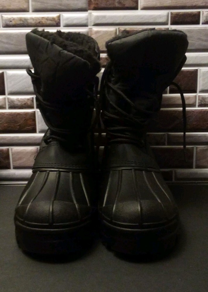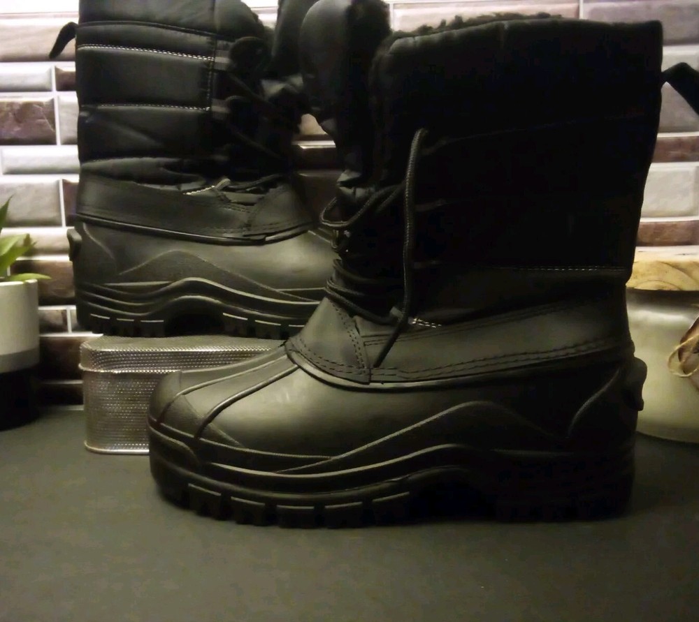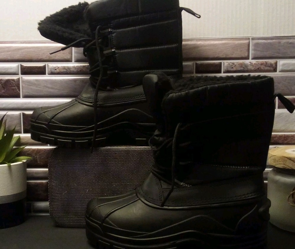 These kids' winter snow boots in size 3Y feature a round toe shape with a lace-up closure for a secure fit. Designed for winter activities, they are made of waterproof blended fabric with a rubber outsole for traction. The mid-calf boots are insulated with 3M Thinsulate insulation, providing warmth and comfort during outdoor adventures. The black boots are lightweight, cushioned, and lined for added coziness, making them perfect for travel or casual wear in snowy conditions.