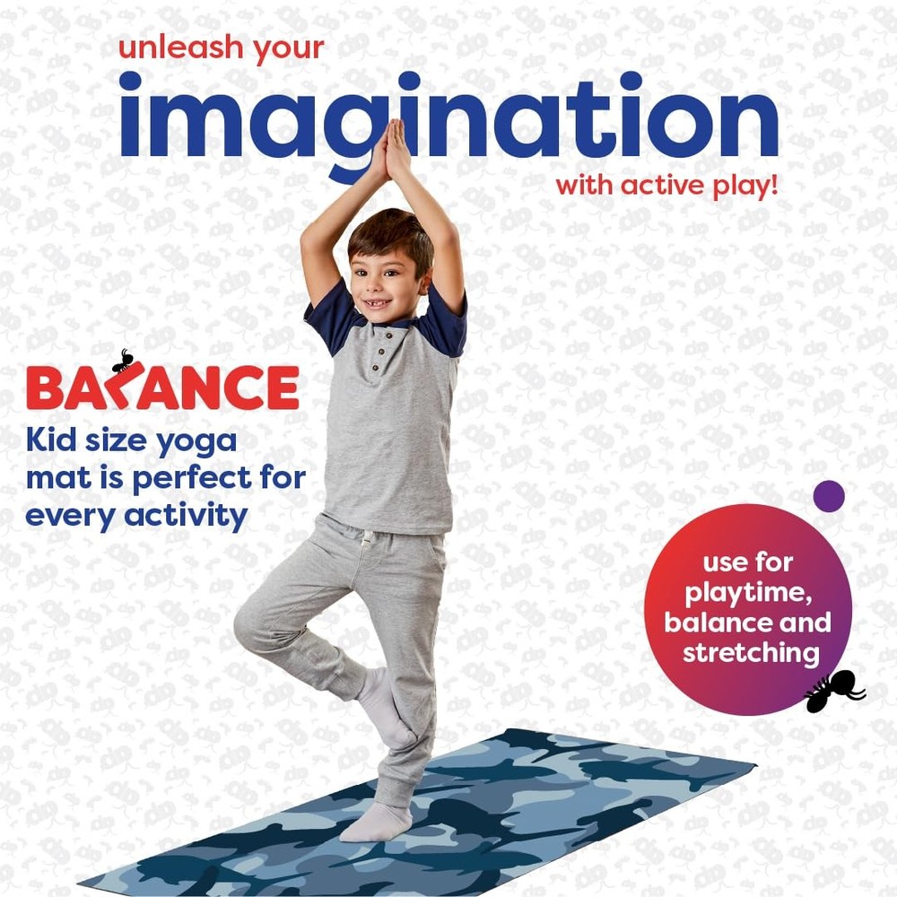 THE PERFECT STARTER MAT FOR YOGIS – This non-slip yoga mat for kids provides a safe, phthalate-free surface for yoga, stretching, and play. The 3mm cushioned mat offers comfort while improving balance, focus, and fun SUPER GRIP, NON - SLIPS - SAFE FOR ACTIVE KIDS – Extra textured non-slip surface keeps tiny feet steady during yoga, gymnastics, or dance. Toxic-chemical-free so parents can relax while kids stretch & play TAKE THE FUN ANYWHERE – Lightweight & tough, this travel-friendly & durable yoga mat survives rolls, jumps, and folds. Perfect for home, school, or trips—because playtime shouldn’t stop at the door WIPES CLEAN IN SECONDS – This long-lasting yoga mat for children is tear-resistant and easy to maintain. Great for home workouts, school activities, or outdoor adventures, keeping playtime mess-free PARENT-APPROVED – Loved by moms and dads, this easy-to-clean yoga mat measures 60" L x24" H, just right for little yogis—durable for playtime, lightweight for travel, and non-toxic for peace of mind