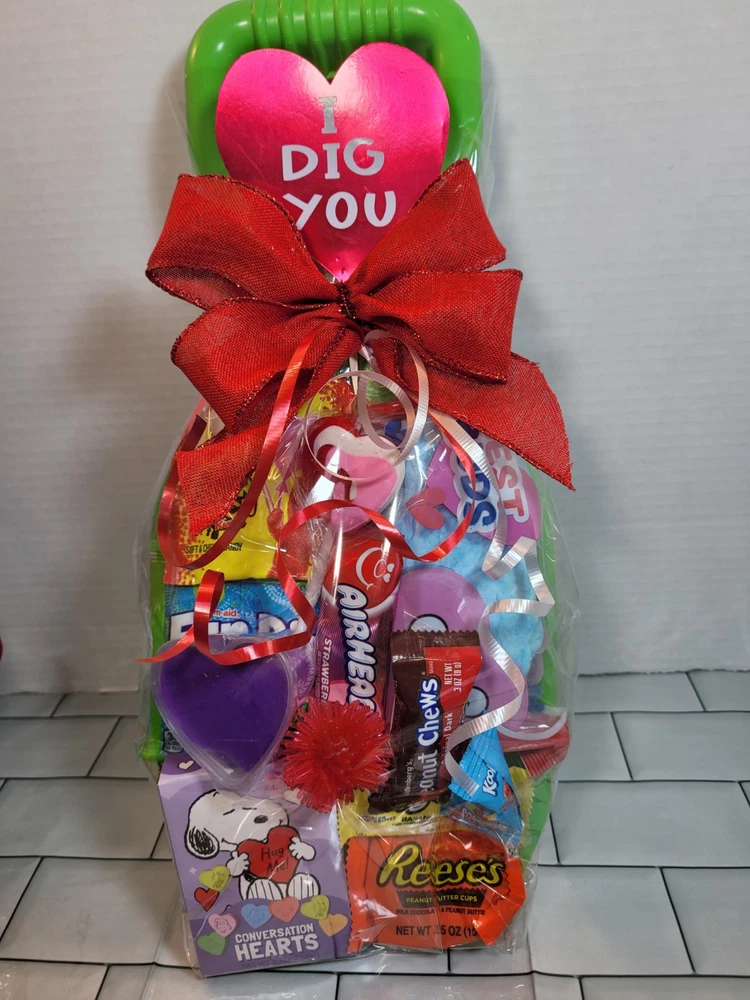 The gisnt Valentine's shovel is designed for kids, suitable for both boys and girls. It contains items appropriate for Valentine's Day with various types of candy. It is a thoughtful gift idea for kids to celebrate love and friendship during Valentine's Day.