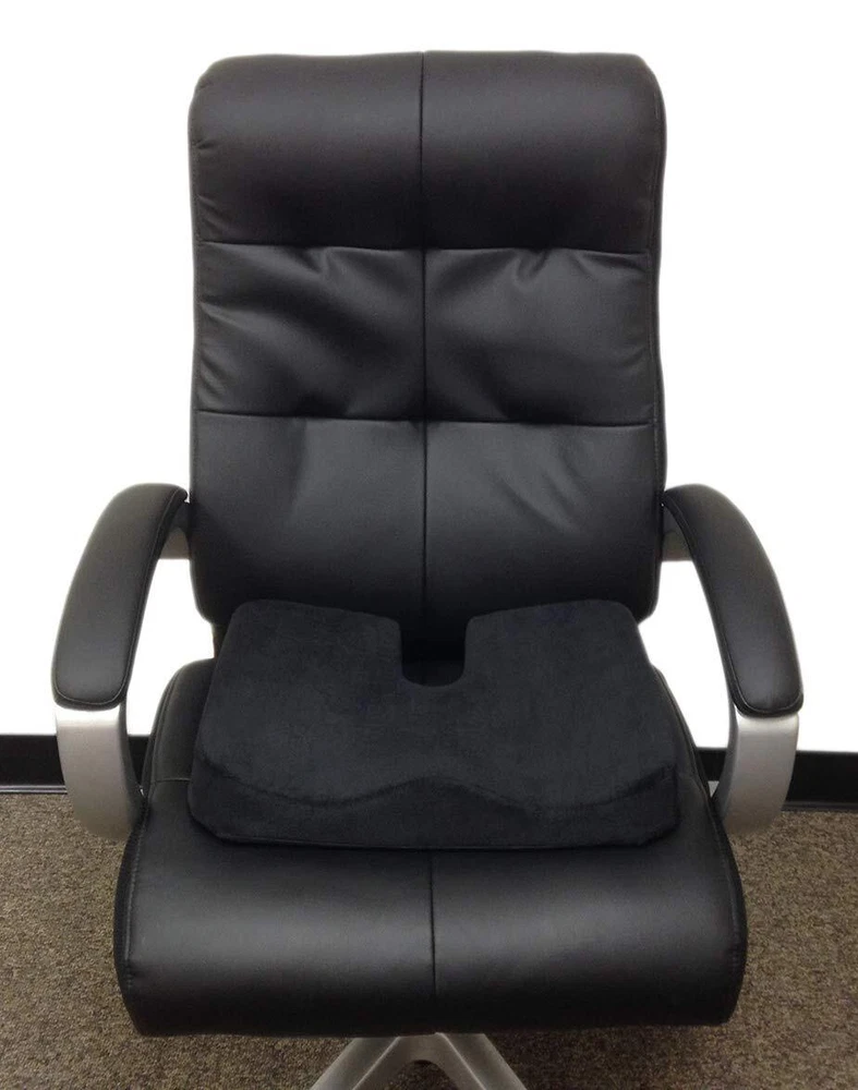 This orthopedic superior grade memory foam cushion will add relief and comfort to any chair, bench, car seat, plane seat, wheelchair, or floor. The cooling gel-enhanced technology stabilizes temperature by reducing trapped body heat in the cushion and relieves pressure points. The specially designed U-shape contoured cushion provides relief from pain and tension, and promotes good posture, proper spine alignment, healthy weight distribution, and ultimate comfort. Made from the highest quality memory foam, this cushion will not flatten out from prolonged use like other cushions. The firm density of the cushion provides extra support. The breathable velour cover can be removed from the rear zipper for easy cleaning. The non-slip bottom keeps the seat cushion in place on any surface. Recommended for: Extra cushioning for any chair Relief of pain, tension, or numbness from prolonged sitting Bed Sores Long hours of office work, flights, car rides, or wheelchair Lower back pain Fractured, bruised, inflamed, or broken tailbone Pelvic and hip pain relief Relief of sciatic tension and nerve damage Herniated, slipped, or bulging discs MAXIMUM RELIEF AND COMFORT: Ultra premium memory foam layered with soothing gel technology provides ultimate support and comfort. New larger design with more gel coverage than other gel cushions. Designed to relieve pain and tension from the lower back, coccyx (tailbone), hip, spine, and sciatic areas. Firm density provides extra support. DURABLE: 100% Premium therapeutic grade memory foam combined with gel. Will not flatten out with prolonged use. Non-slip bottom ensures the cushion stays in place and will not shift or slide on any surface. ERGONOMIC: Promotes good posture, spine alignment, and healthy weight distribution for hours of comfortable sitting. USE ON ANY SEAT: Superior comfort for any chair, bench, car seat, plane seat, or wheelchair. EASY CLEANING: Removable velour cover is machine washable for easy cleaning.