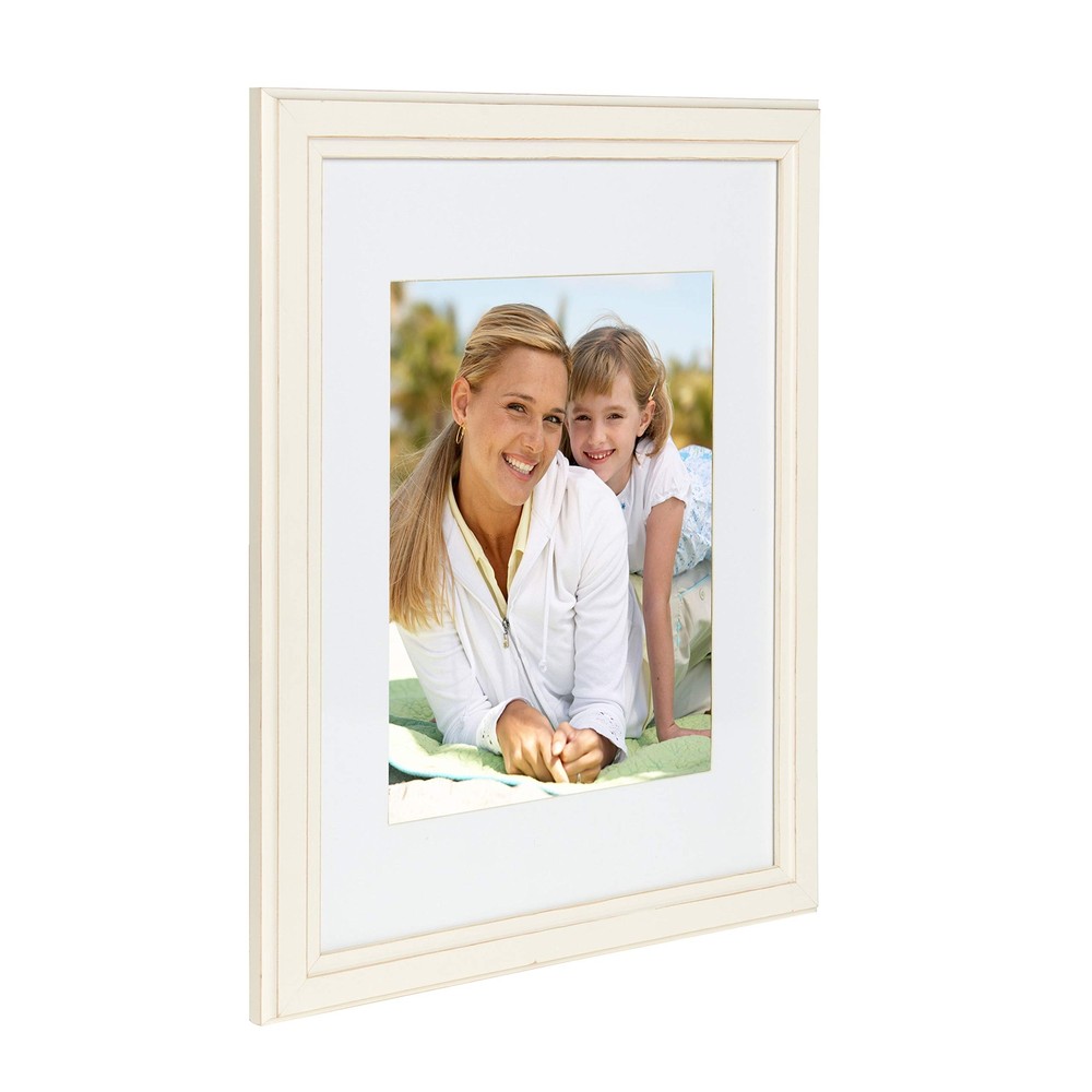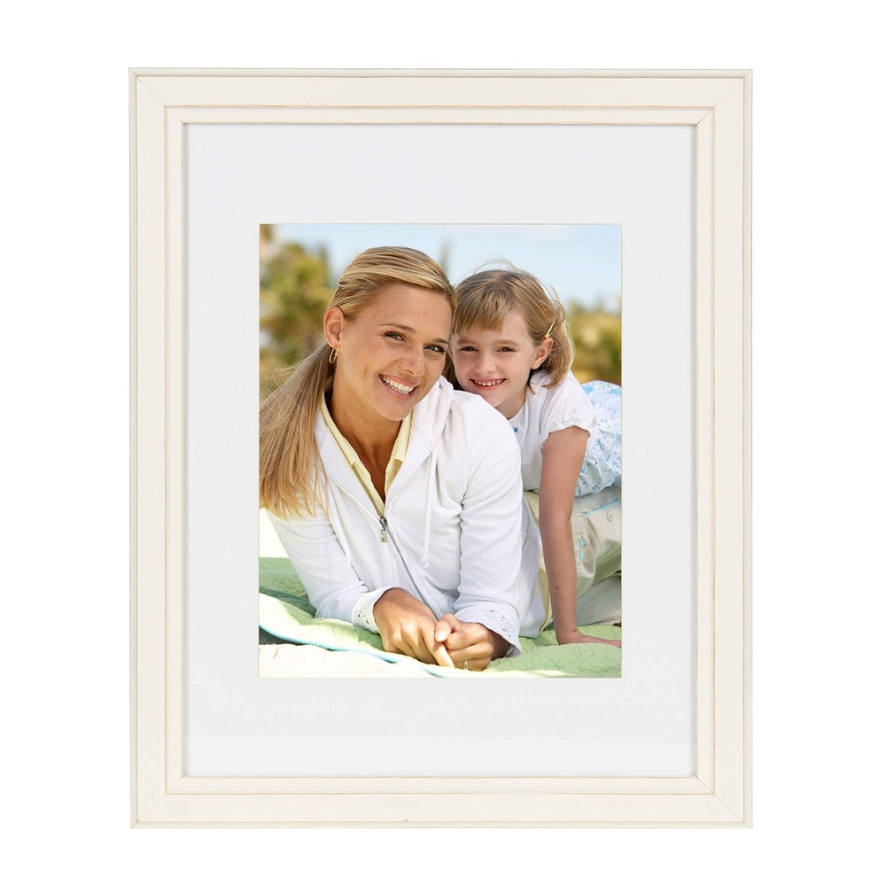 Kieva Distressed Soft White Solid Wood Picture Frame with 11x14 Mat Opening for 8x10 Photos – Elegant Rustic Home Decor