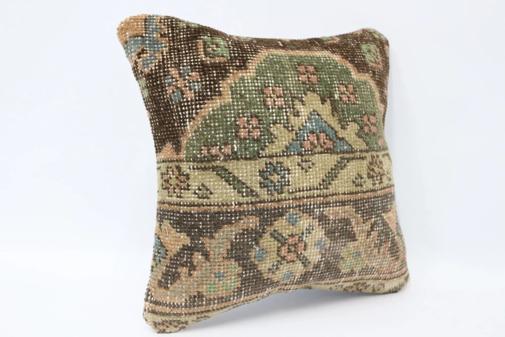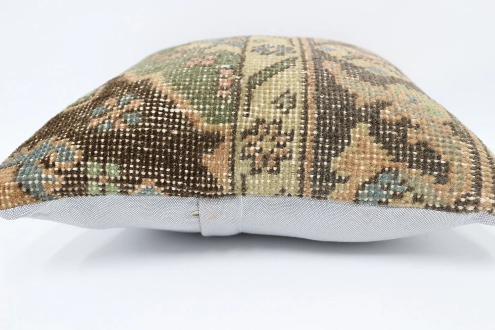 Kilim Cushion Sham, Boho Pillow, 14"x14" Brown Cushion, Kilim Pillow
