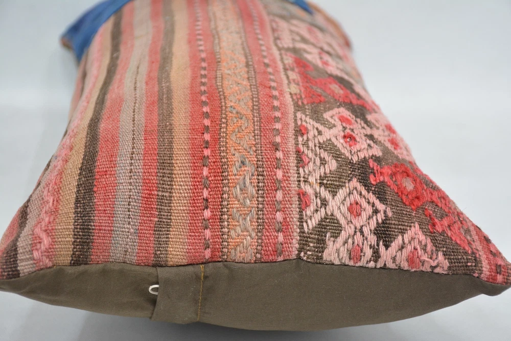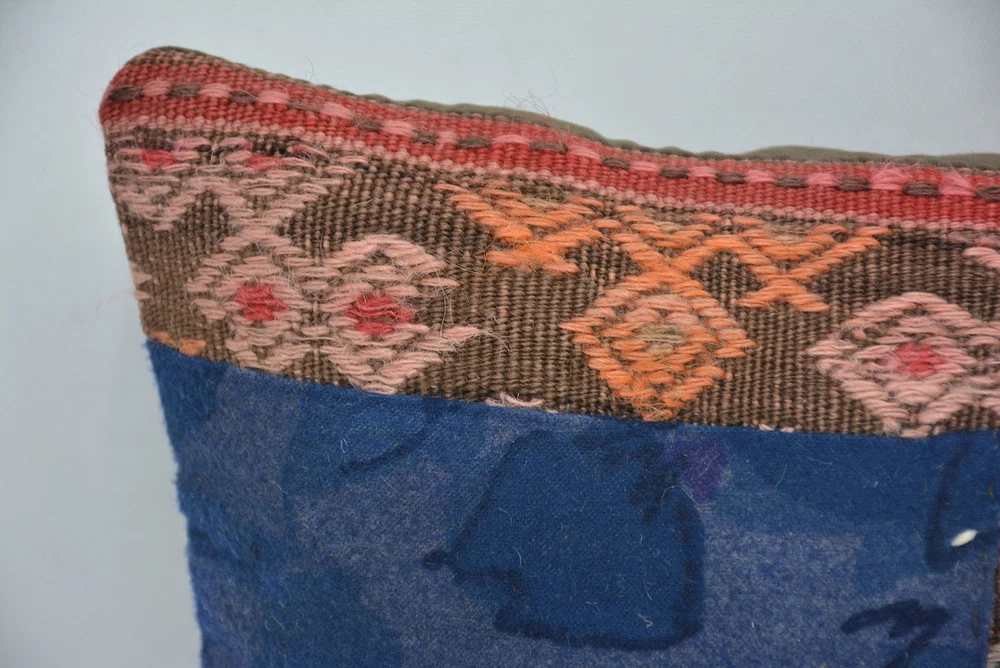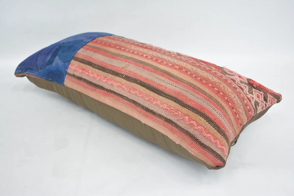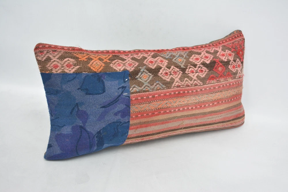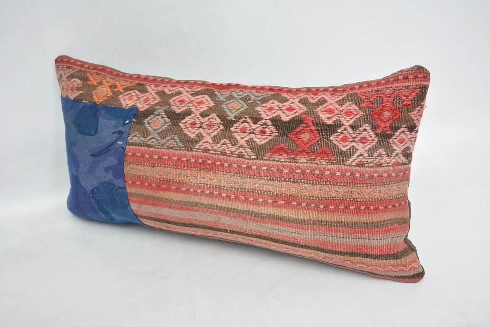 Kilim Pillow, 12"x24" Blue Pillow Cover, Wool Pillow Covers, Personalized Gift