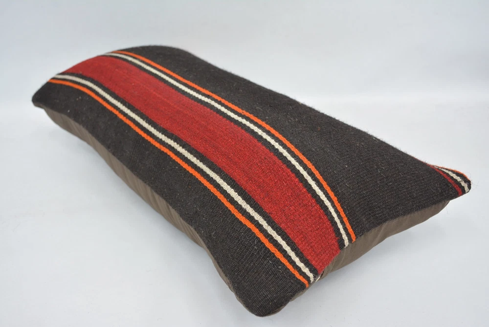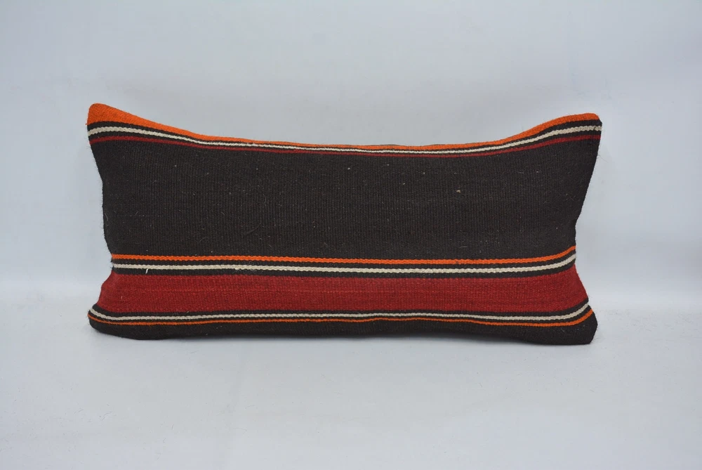 Kilim Pillow, 12"x24" Brown Cushion Case, Pillow for Sofa, Personalized Pillow