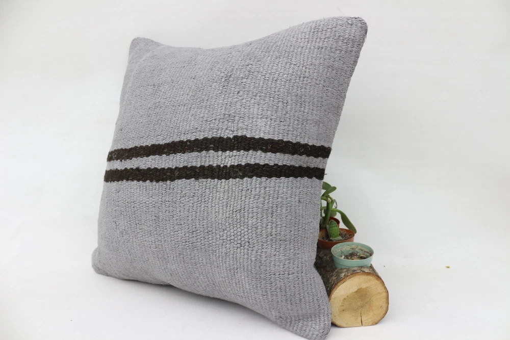 Kilim Pillow, Body Pillow, Throw Pillow Covers, 16"x16" Gray Pillow