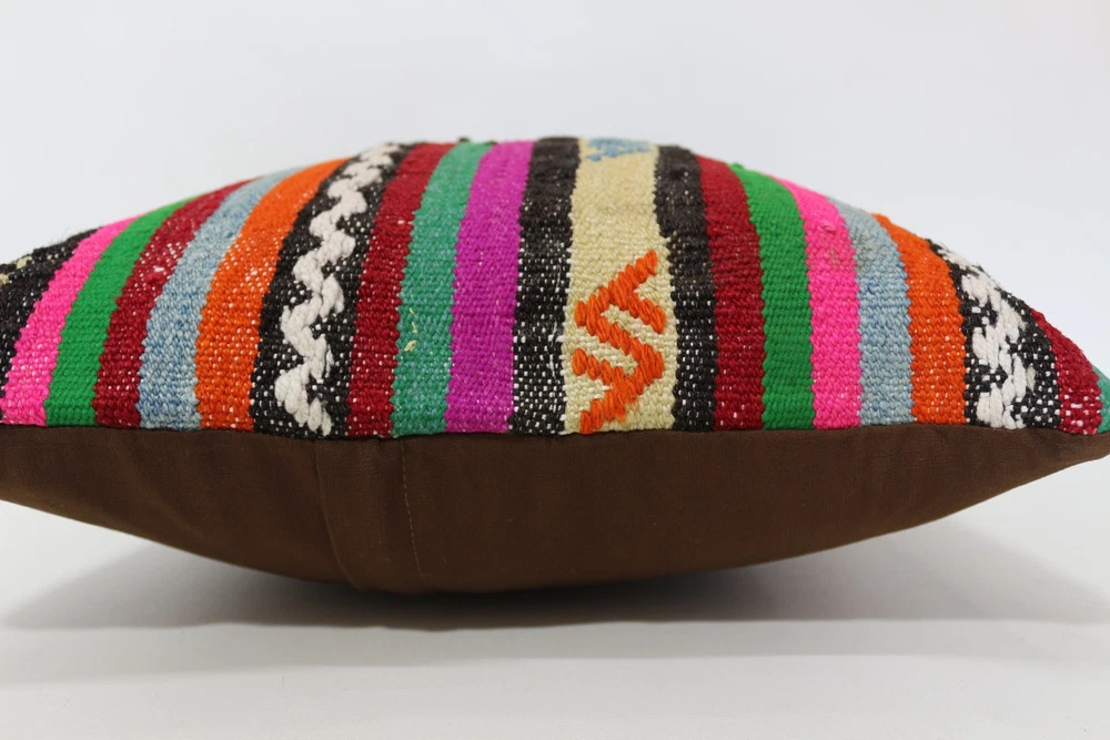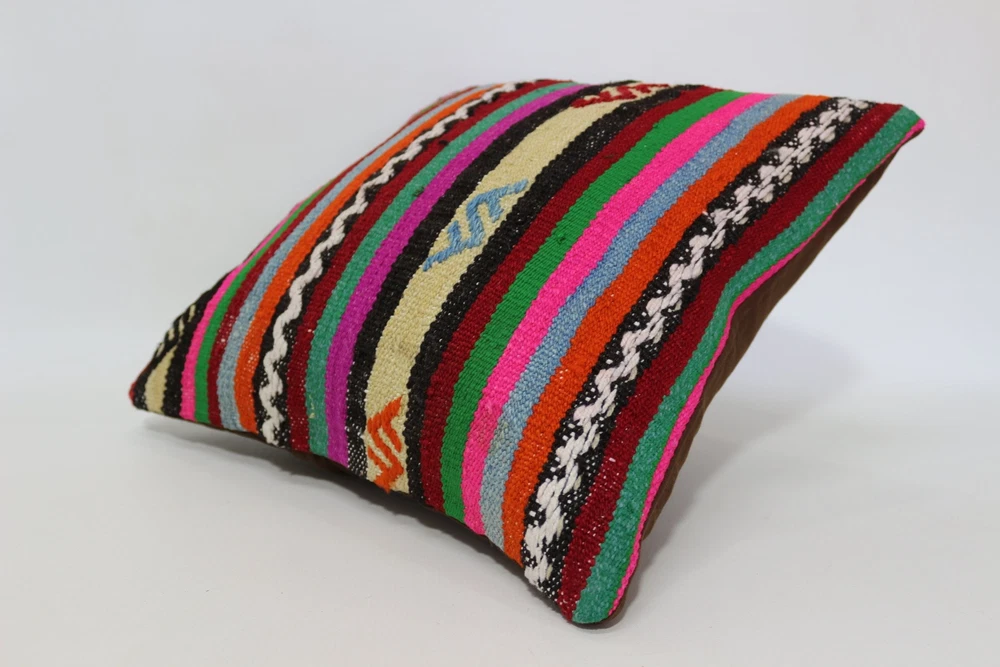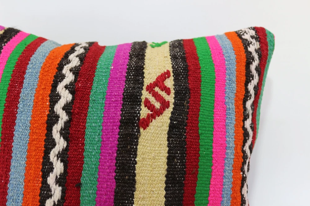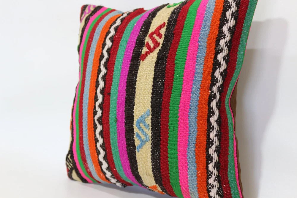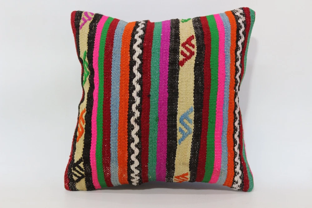 Kilim Pillow Details: All of my beautiful pillow covers or cushion cases are designed and made by me. I am making my throw pillow covers from handmade vintage rugs, Turkish rugs. Therefore, each of my vintage kilim pillowcase is one of kind. These cushions covers are piece of an art. The size of this pillow is 16 x 16 inches or 40 x 40 cm. The front side of this decorative pillow cover, cushion cover is wool on wool vintage kilim rug. The backside of this throw is high quality cotton fabric with a high quality zipper. This listing has 2 option for this handmade pillow. You can choose with insert or without insert. The listing photos is with insert in the pillowcase which is just for demonstration purpose. All of my vintage Turkish rugs have been professionally washed before I cut them as pillow case or cushion case so these kilim covers are 100 posent clean and ready to use. Due to the age and handmade nature of these vintage rugs, there might be imperfections and flaws that are not considered defects. This is a piece of a handmade vintage rug with minor signs of wear consistent with age and use that give it an antique look. You can see the condition of the rug pillow clearly in the detailed photos. I am going to ship your order of decorative pillow as soon as possible. I usually ship in the next day with DHL Express or FedEx which will deliver the kilim pillow, cushion cover just in 3-5 business days. It is my responsible until you receive pillow cover or pillow cover with insert at your door. If the pillow cover or insert get lost or damage during the shipping, I will ship the new kilim pillow cover or pillow insert for free as soon as possible. I take photos of my throw pillows indoor with professional camera which shows the real colors. The photos of these Turkish pillow covers are not altered. Keep in mind the colors of the rug vary slightly in different lights. Please contact to me for additional photos. I take the photos of my vintage rugs outside with daylight to show you the real and natural colors. My photos are not altered. Keep in mind the colors of the rug vary slightly in different lights. Please contact to me for additional photos. SATISFACTION GUARANTEED for your order in my shop. Your SATISFACTION is the most important to me. Please write me if you have any question or if you don't like anything from my pillow covers, cushion covers. If any reason, you are not happy from your Turkish pillow cover, I accept return without any hassle. Please read my shop policies for details. This cushion case or pillow cover can be used as decorative throw pillow, gift pillow, Christmas pillow case, bedding pillow, lumbar pillow, sofa pillow, bohemian pillow, boho pillow. You can find in any kind of Turkish kilim pillow cover in different design such as striped pillow, embroidered pillow, and geometric pillow.