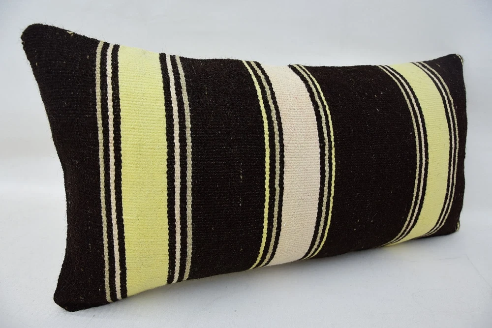 Kilim Pillow Cases, Throw Pillow, 12"x24" Brown Cushion, Body Pillow