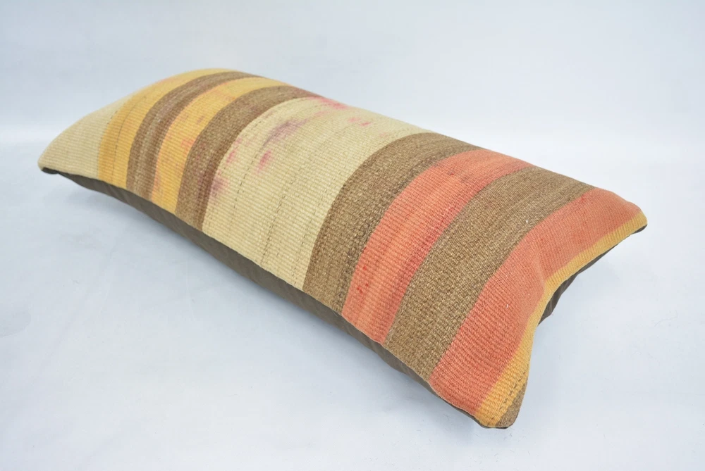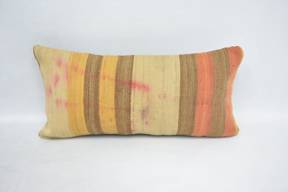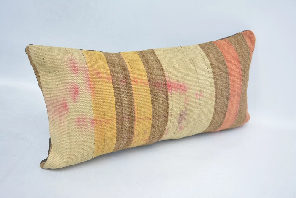 Kilim Pillow Cases, Turkish Kilim Pillow, 12"x24" Beige Pillow Covers