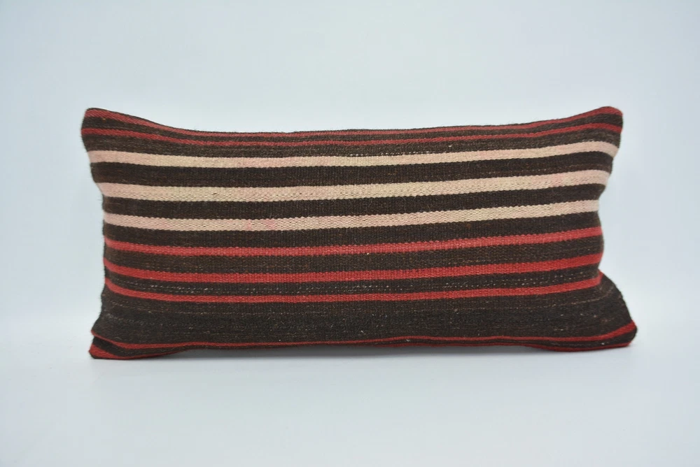Kilim Pillow Cover, 12"x24" Brown Pillow, Pillow for Sofa, Designer Pillows
