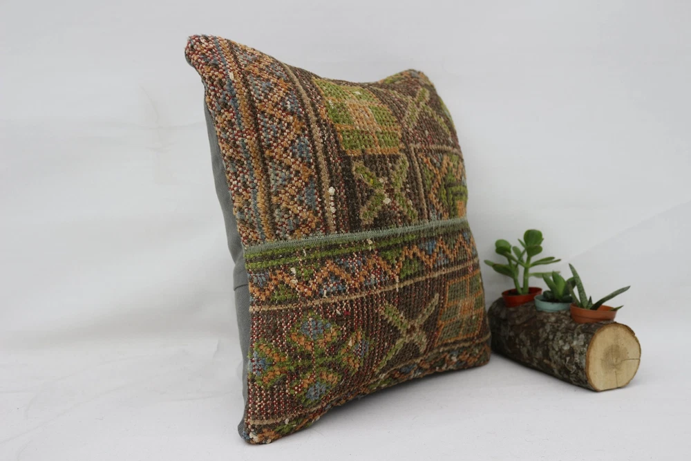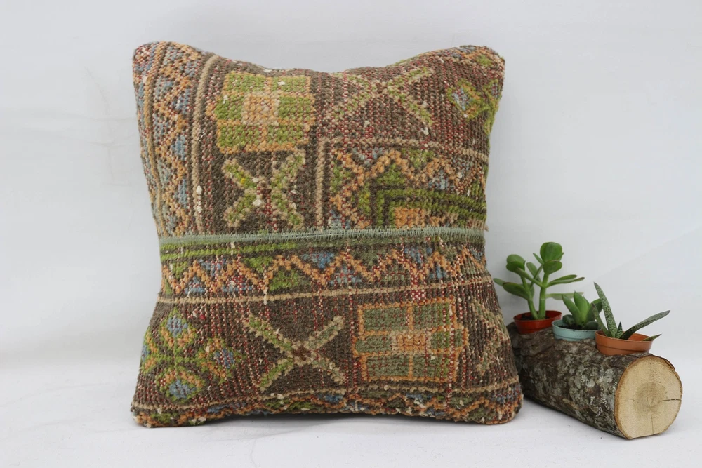 Style: Turkish Item Width: 16 Size: 16X16 Room: Any Room, Bathroom, Bedroom, Foyer, Hallway, Basement, Conservatory, Dining Room, Garage, Guestroom, Kitchen, Living Room, Nursery, Patio, Porch, Terrace Personalize: Yes Customized: Yes Shape: Square Pattern: Tribal Country/Region of Manufacture: Türkiye Origin: Türkiye Item Weight: 1 lb Department: Girls, Boys, Kids, Men, Women, Teens, Adults Brand: Handmade Closure Type: Zip Labels & Certifications: Organic Material: 100% Cotton, 100% Wool Subject: Home Sweet Home Color: Green Care Instructions: Easy Care, Hand Wash Only, Machine Wash Fill Material: 100% Polyester Features: Embroidered, Hypoallergenic, Outdoor, Decorative, Textured Theme: Art, Farm File, Fashion, Houses & Architecture, Yoga Type: Decorative Pillow Item Length: 16