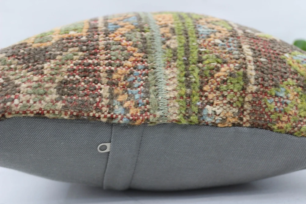 Kilim Pillow Cover, Cushion Case, 16"x16" Green Pillow Case, Pillow for Sofa